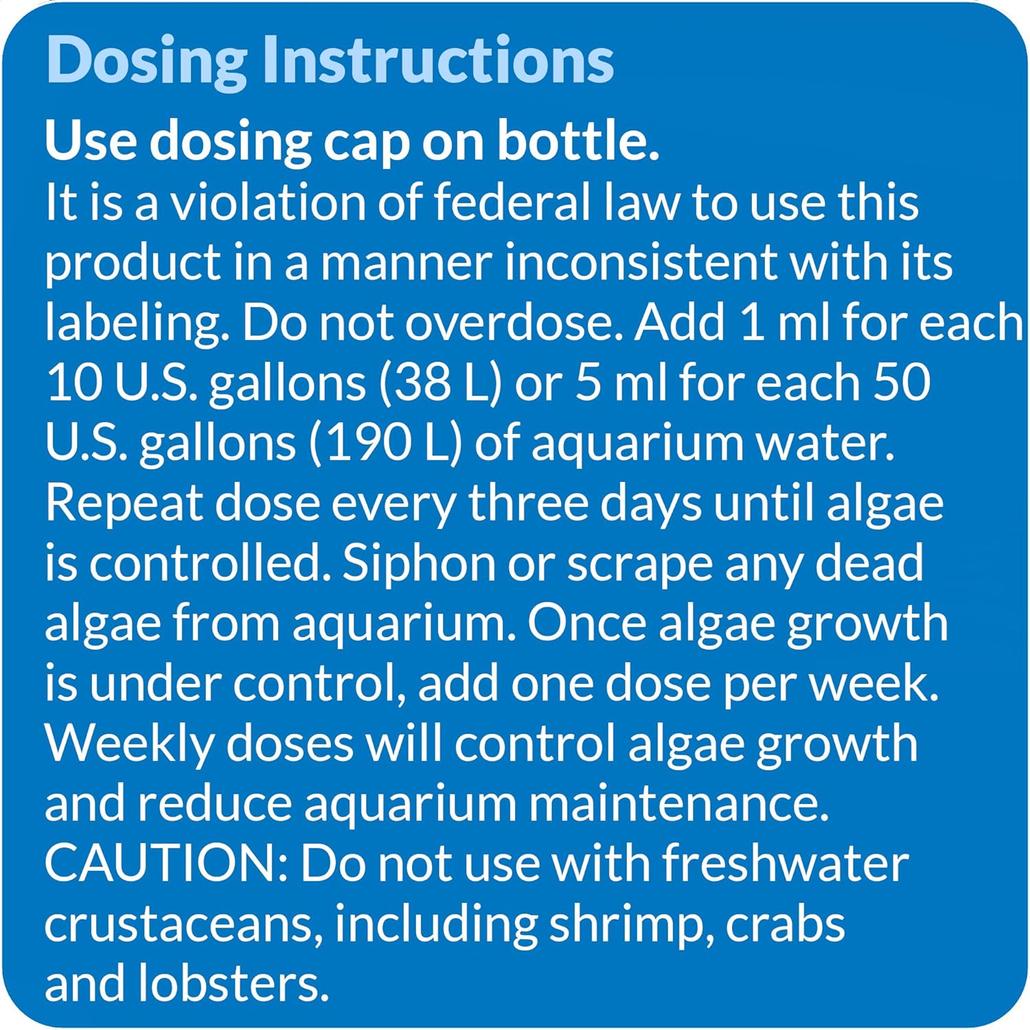 - Dose every three days until algae is under control then dose weekly