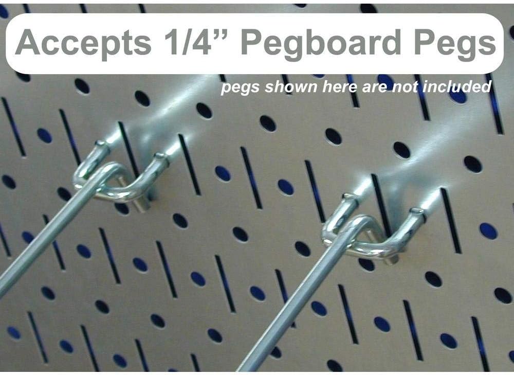 - Galvanized steel pegboard panels accept slotted, stable, and more secure hooks, pegs, brackets, and shelves