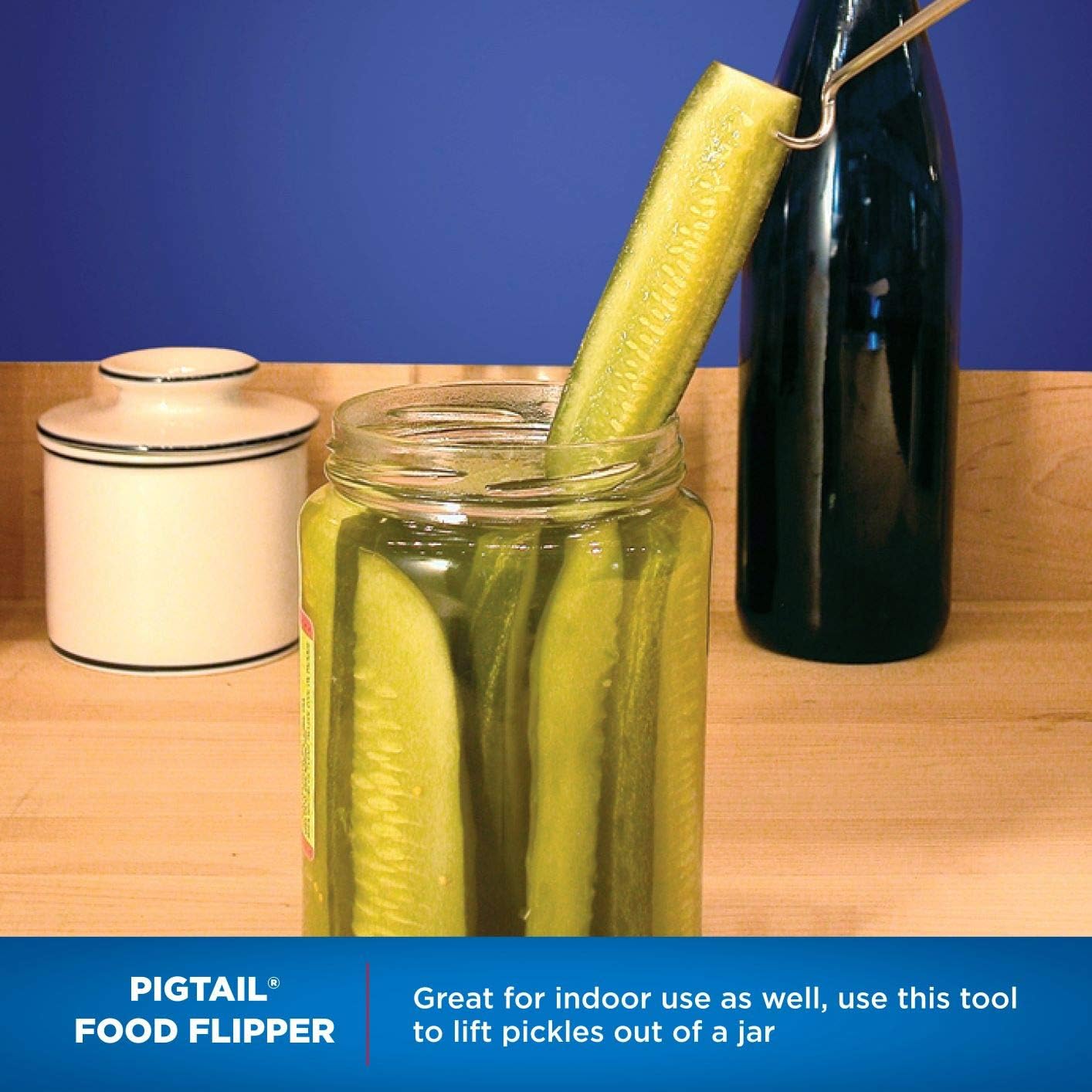 - PigTail for Grilling: Pick pickles from the jar, hot corn on the cob from boiling water or easily flip bacon in the fry pan and much more. Eliminate the need for tongs, forks and spatulas… flip steaks, chops, breasts and vegetables on the grill