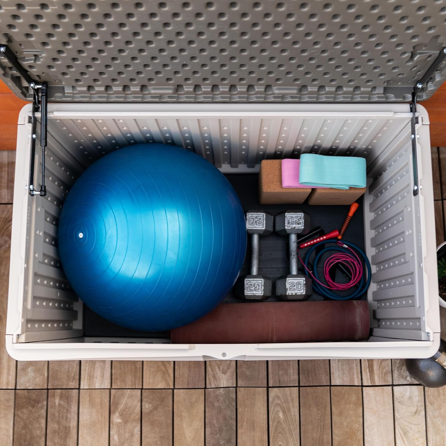 Lifetime 60103 Deck Storage Box, 80 Gallon, Desert Sand/Brown