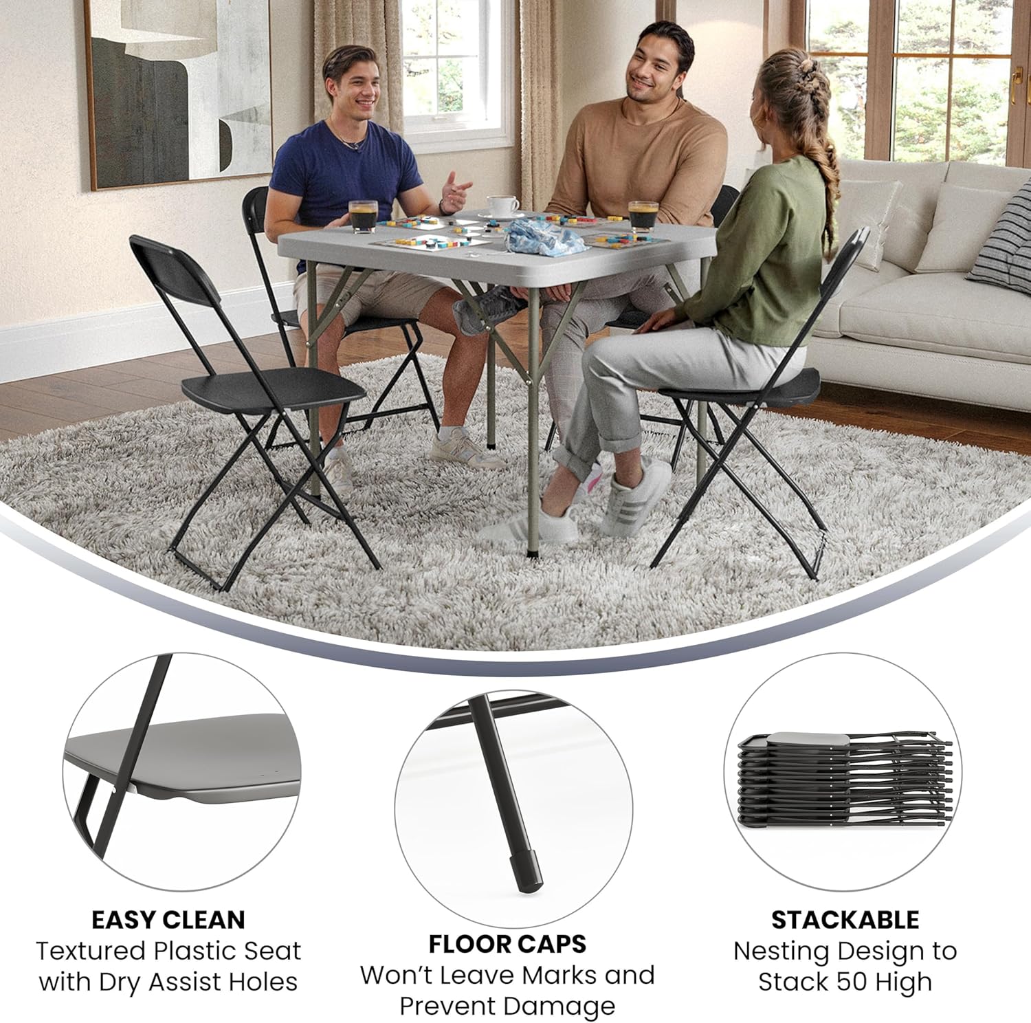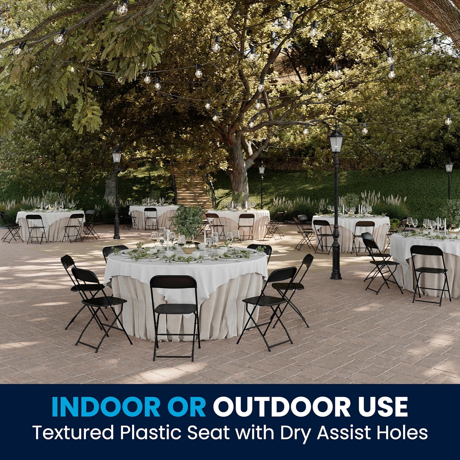 - SET OF 10 FOLDING PLASTIC CHAIRS: Offers reliable, on-demand seating for commercial or home uses such as corporate events, game nights, school functions, weddings, barbecues, and other events or get-togethers