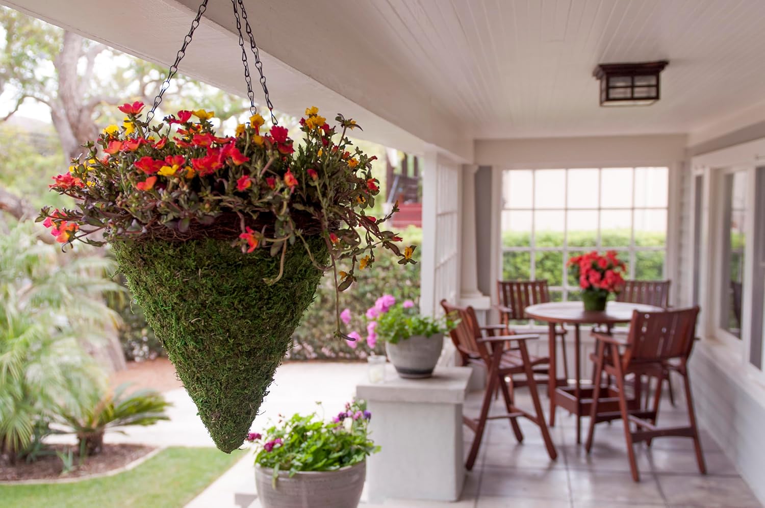 - Built to Last Outdoors: Designed with a sturdy wire frame and 18" rust-resistant chain, this planter keeps its shape and beauty through seasons of watering and outdoor use without deteriorating.