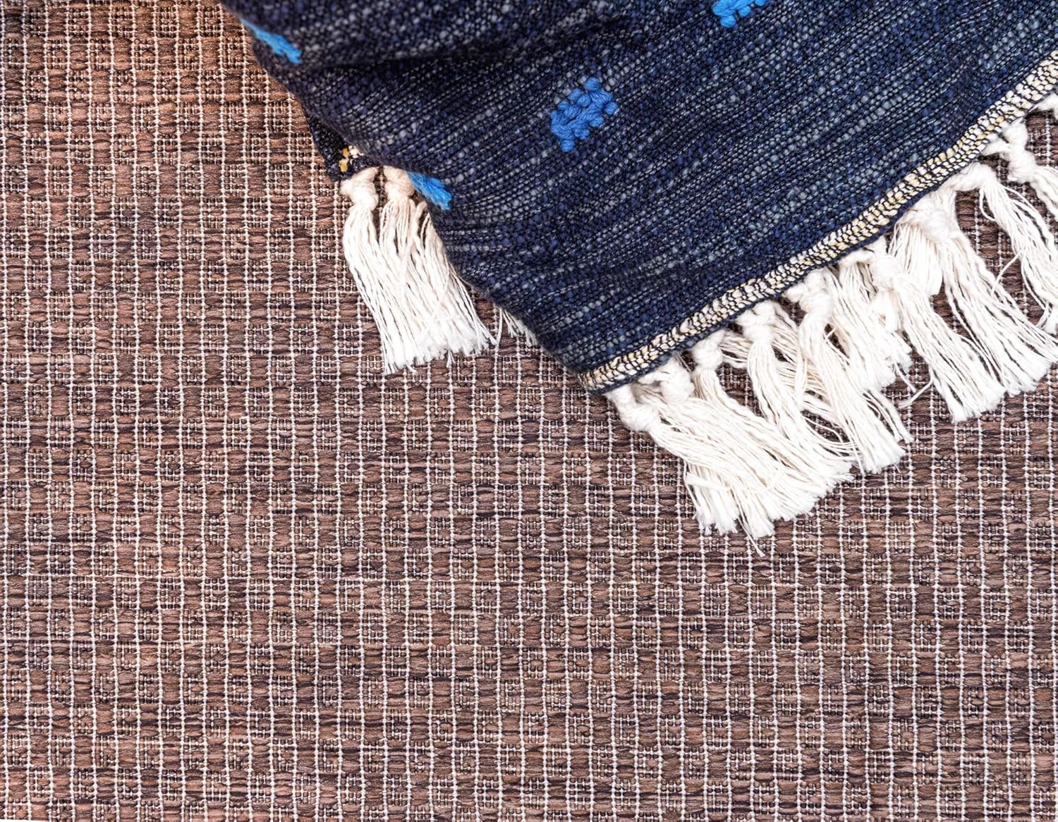 Unique Loom Outdoor Border Collection Area Rug - Soft Border (5' 3" x 8' Rectangle, Brown/ Ivory)