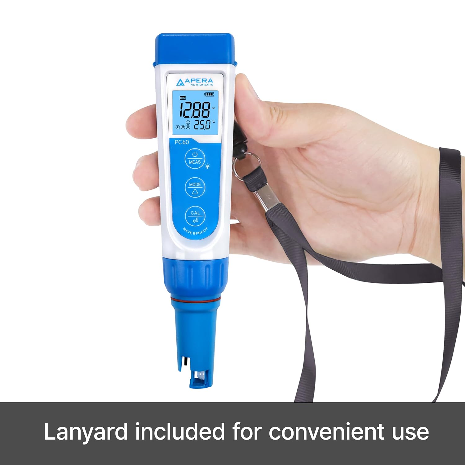 - Complete kit with ready-to-use calibration solutions, calibration bottles, storage solutions, AAA batteries, and a lanyard all in a portable carrying case