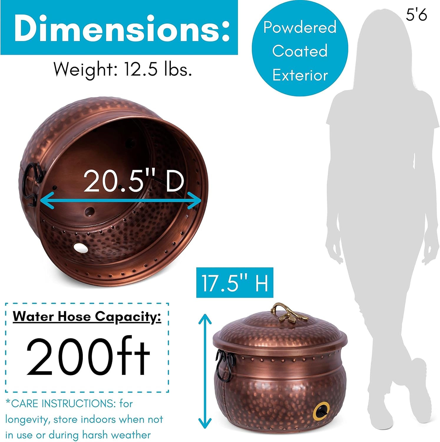 - VERSATILE INDOOR AND OUTDOOR USE: Ideal for holding up to 200 ft of water hose, this pot also doubles as storage for household items like magazines, plants, blankets, or firewood. Weighs 12.5 lbs.