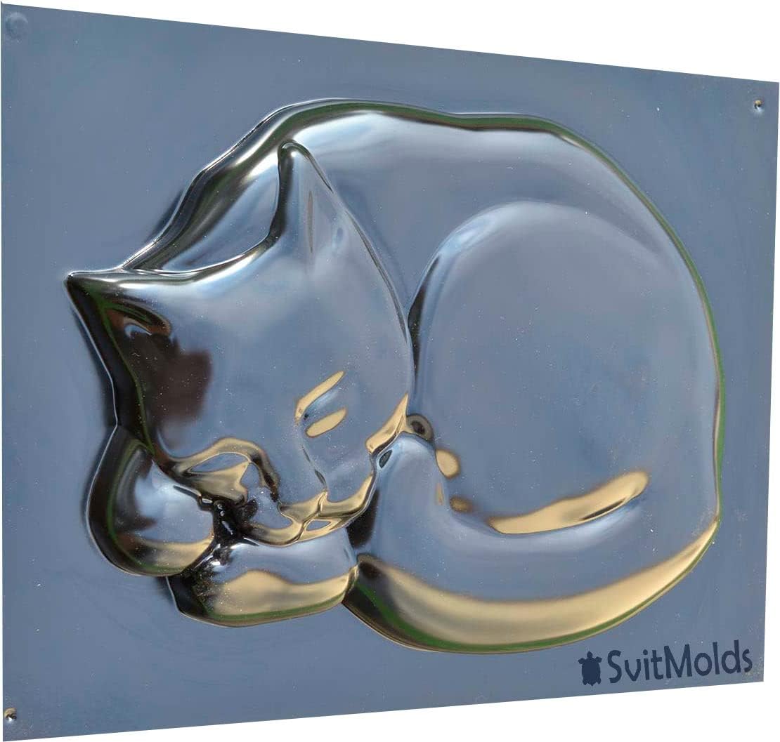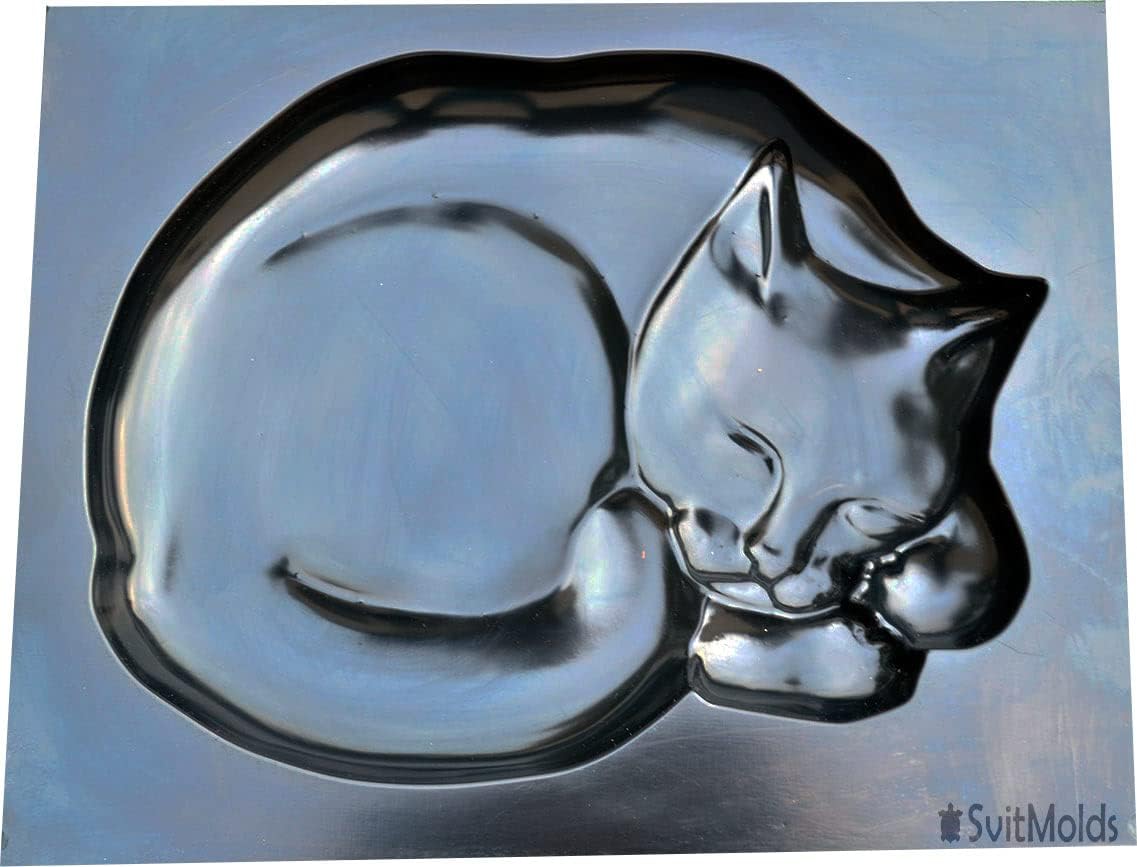 Concrete Mold DIY Cat Stepping Stone Mould Plaster Concrete Sleeping Cat Garden Path Patio or Yard Size14,6" x10,9 x1,6 S03