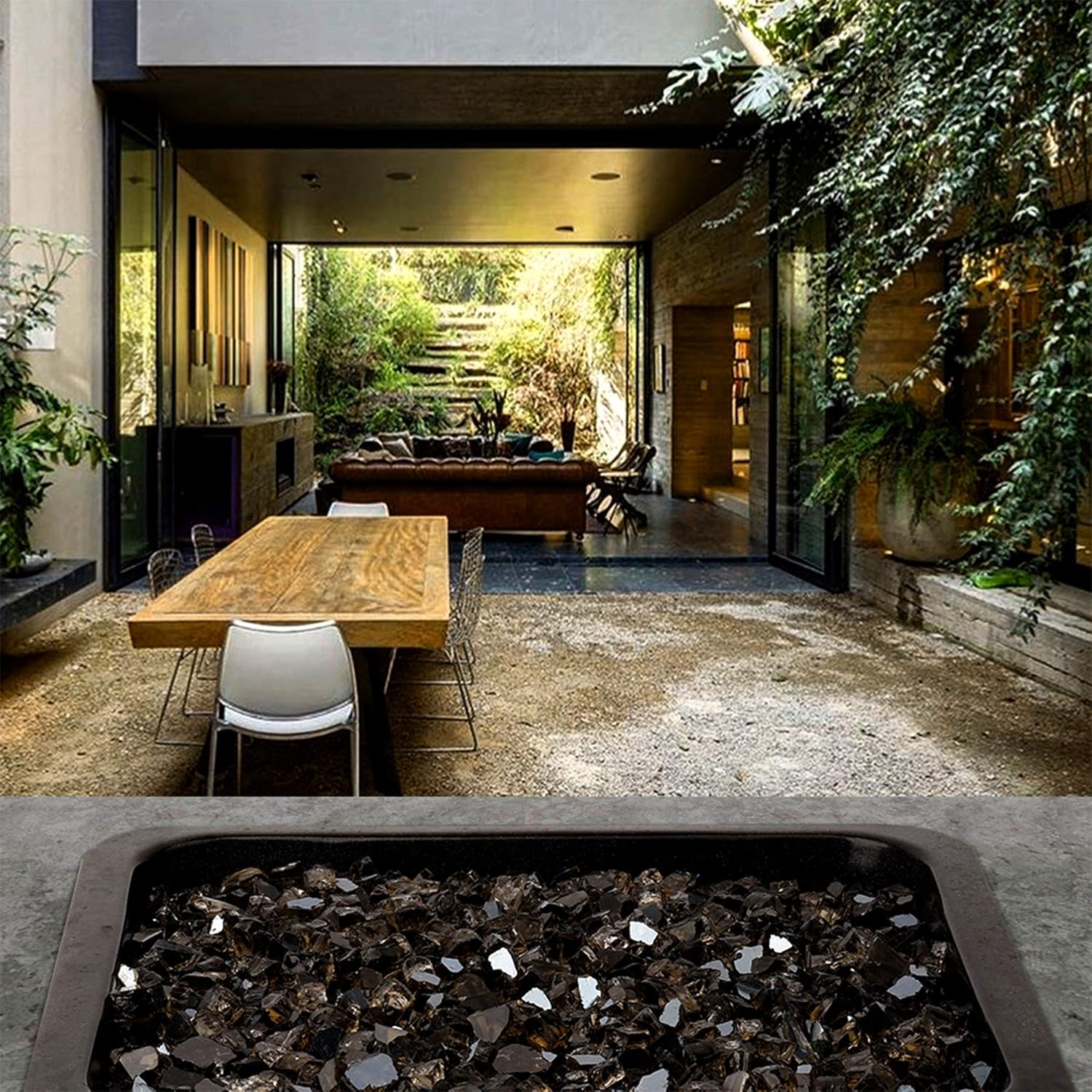 - 【Reflective Tempered Glass Shining In The Fire】- The broken fire glass backed by a highly reflective mirrored backing that gives off a beautiful metallic, It shines in the daytime and appears multicolored at night with fire.