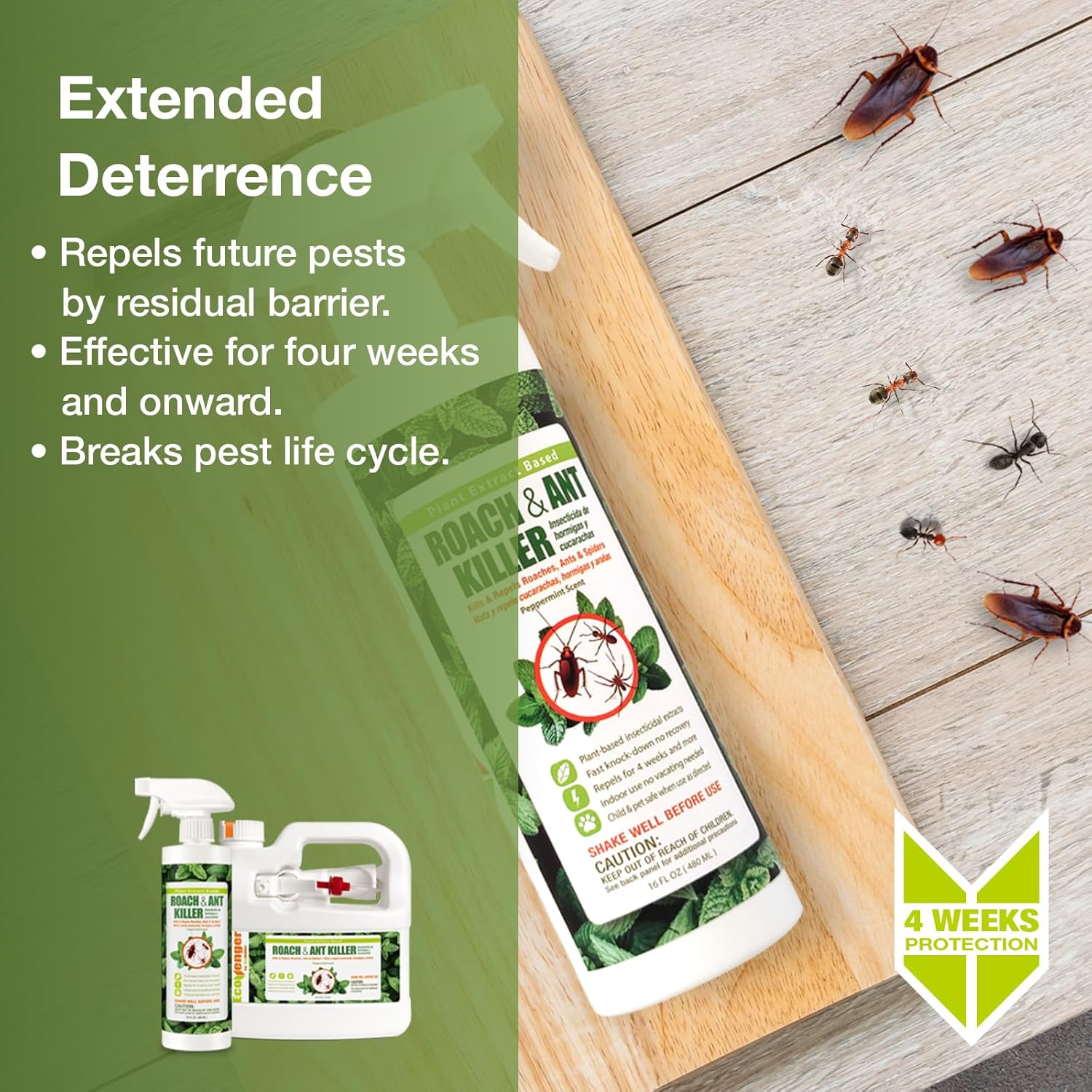 EcoVenger Roach & Ant Killer 16OZ, Kills on Contact, Extended 4-Week Deterrence, Kills Cockroaches, Ants & Other Indoor & Outdoor Crawling Insects, Peppermint Oil, Non-Toxic, Safe for Children & Pets