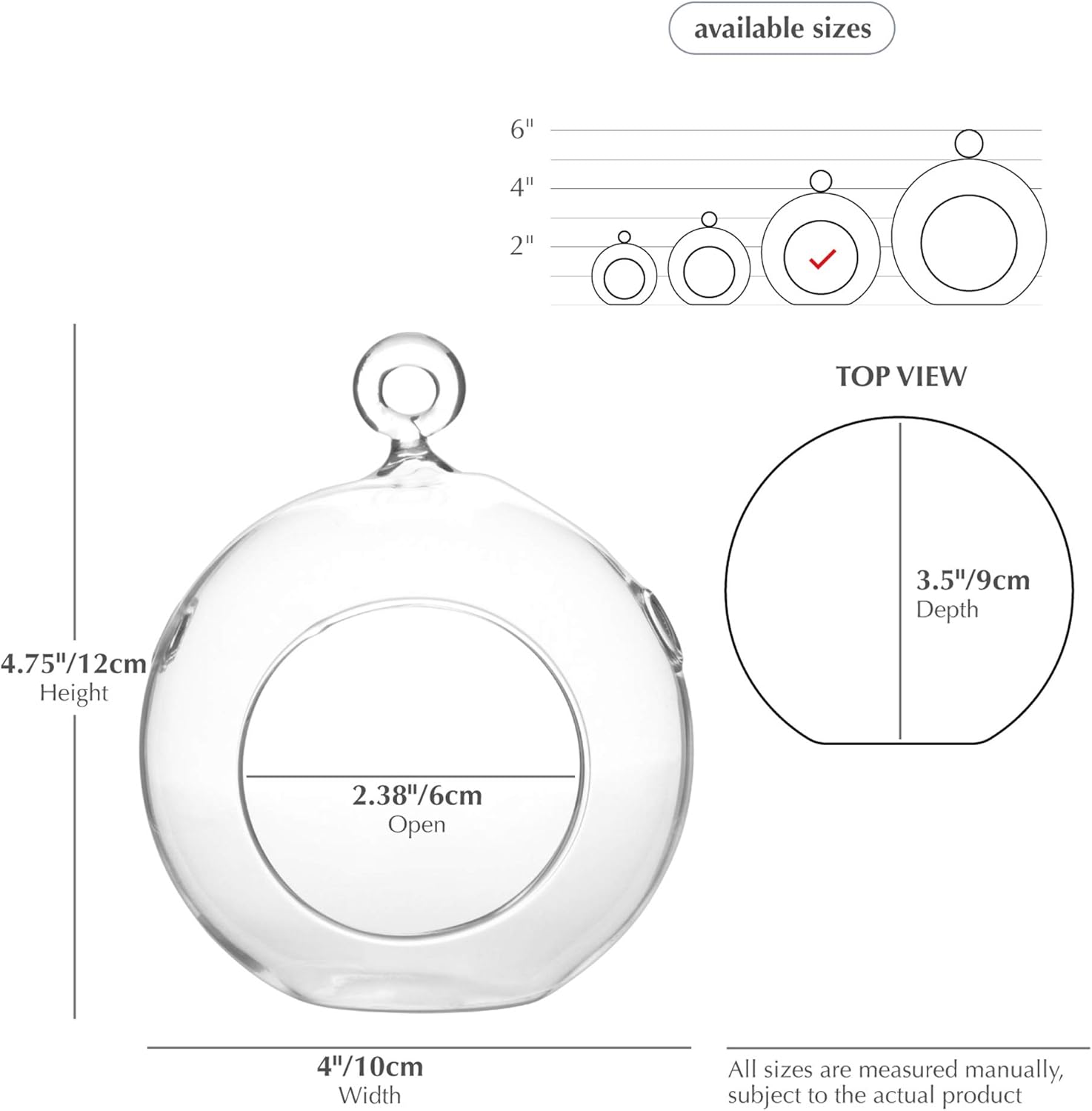 WGV Hanging Terrarium Globe, Width 4", Height 4.75", DIY Air Succulent Planter, Clear Glass Vase Orb with Flat Bottom, Candle Holder for Windowsill Outdoor Garden Decor, 6 Pieces Bulk