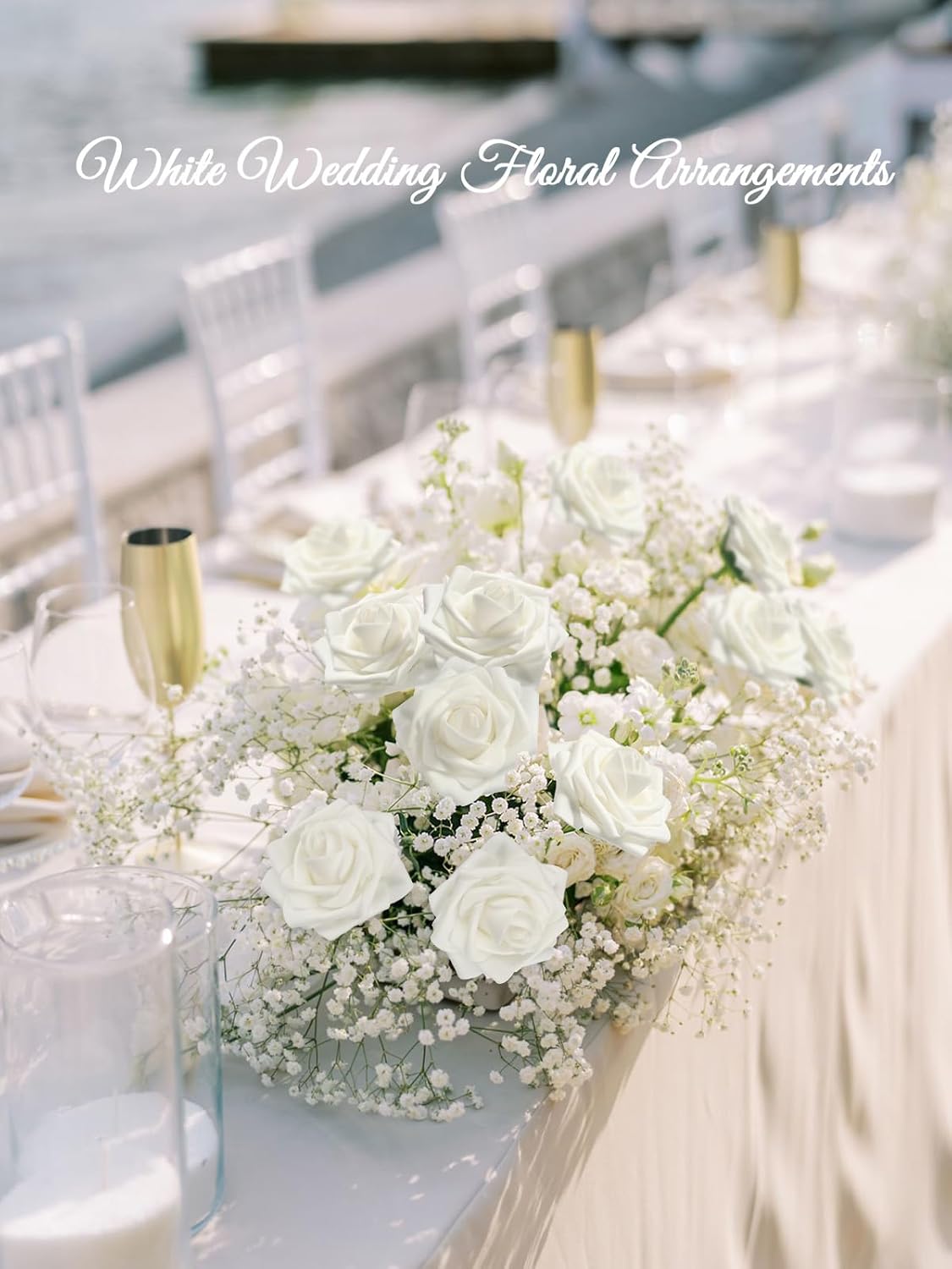 - Real Looking Roses: Realistic 25 white artificial roses. Our artificial roses looks pure and elegant. Enjoy the beauty of natural looking flowers without watering, add great touch to your home