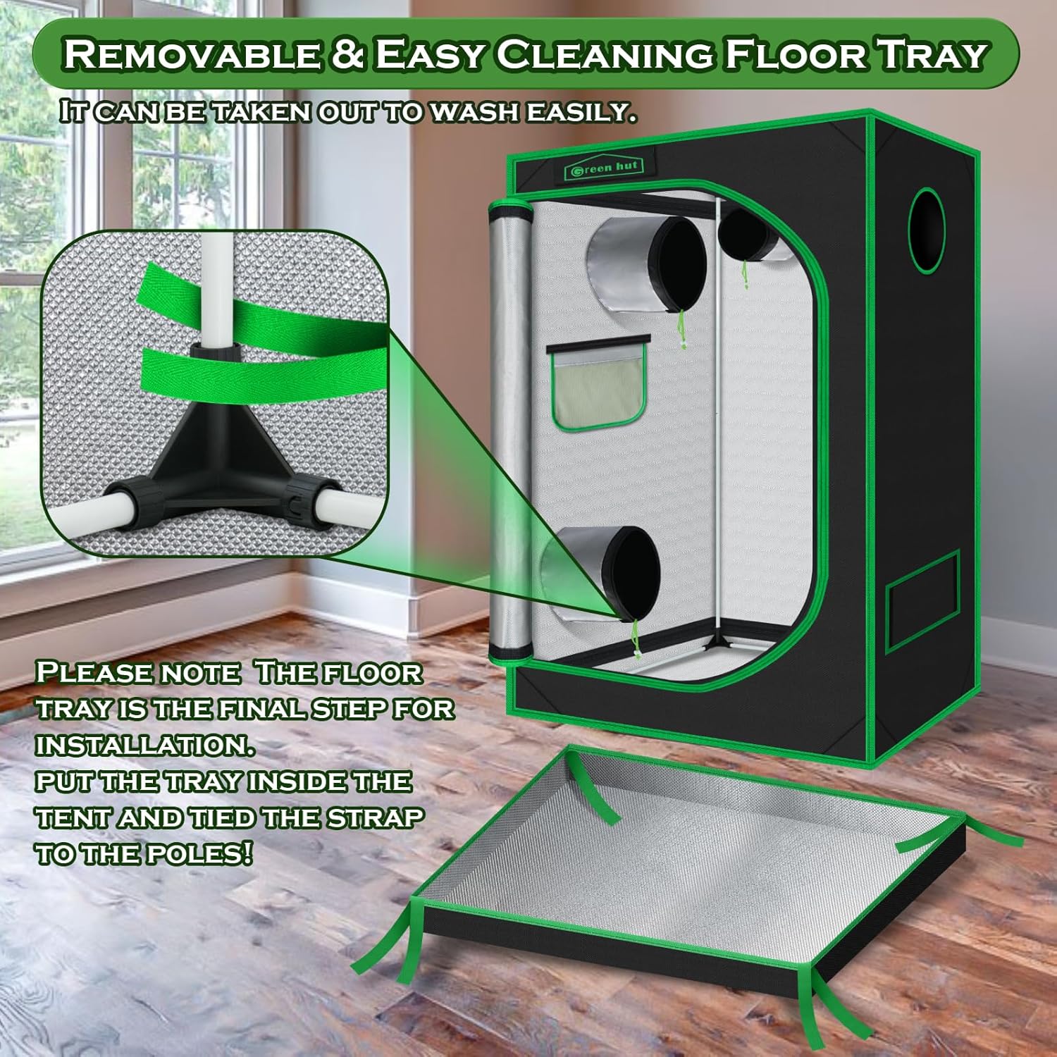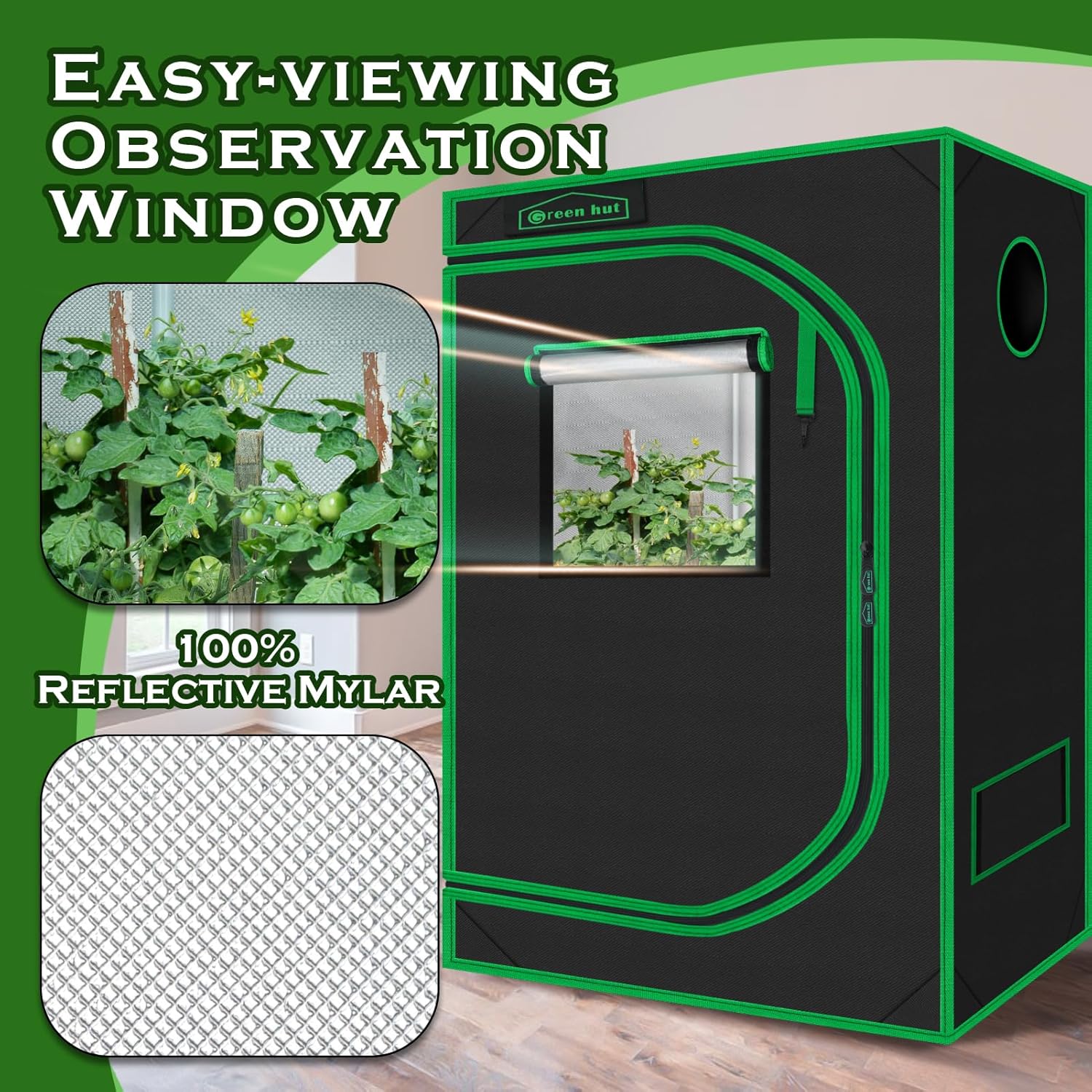 - HIGHLY REFLECTIVE — The grow tent includes a removable Mylar floor tray, and a 100% light-proof, tear-proof reflective Mylar lining to assist your indoor growing light fixtures and equipment. Increase the intensity of your grow lights and retain heat to keep your grow room at the right temperature for your plants, herbs, flowers, fruits, and vegetables to thrive