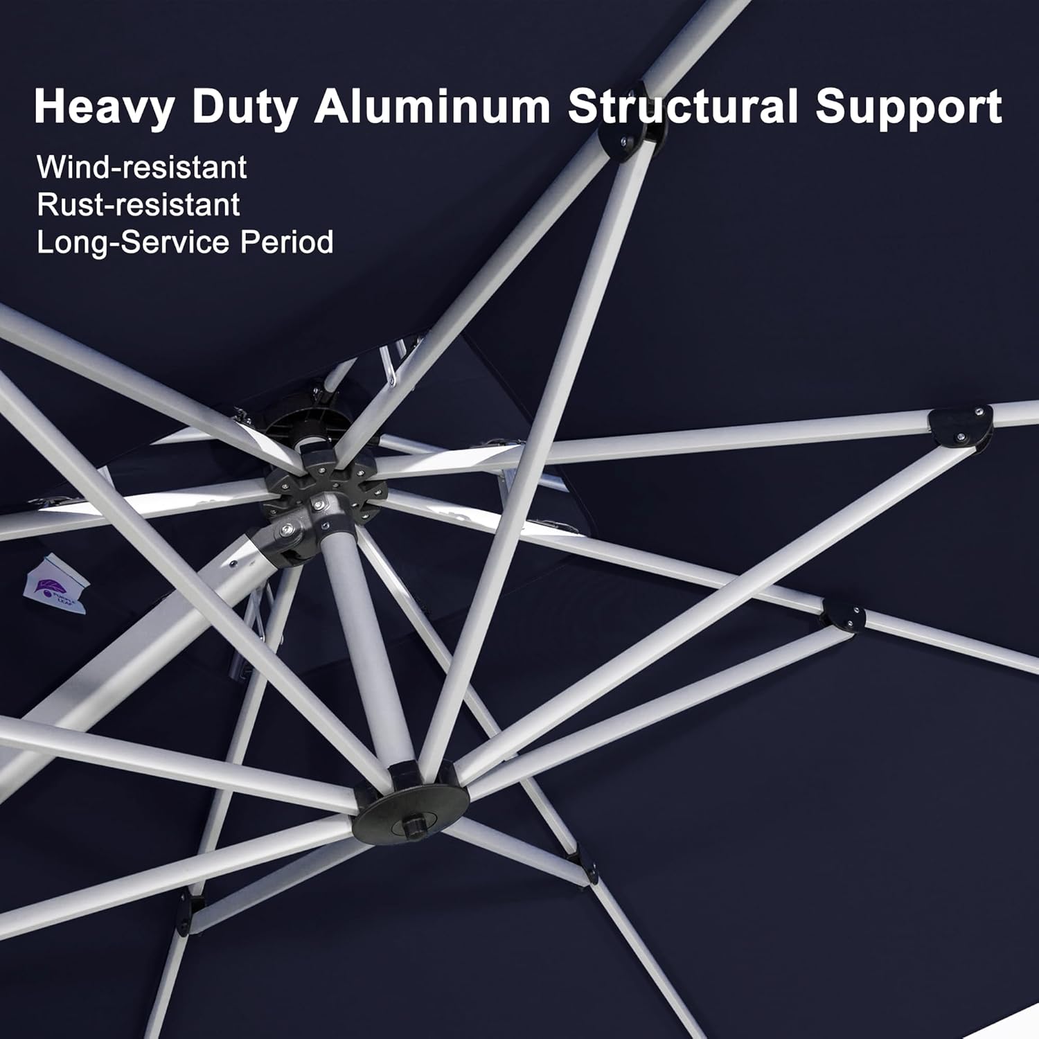 PURPLE LEAF 11 Feet Patio Umbrella Outdoor Round Umbrella Large Cantilever Umbrella Windproof Offset Heavy Duty Sun for Garden Deck Pool Patio, Navy Blue