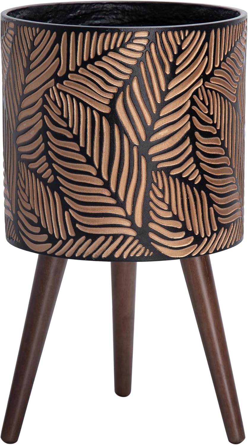 D'vine Dev 12 Inch Planter Pot with Stand, Mid-Century Tall Plant Pot with Legs for Indoor Plants, Large, Bronze/Grey, 88-L-C-6