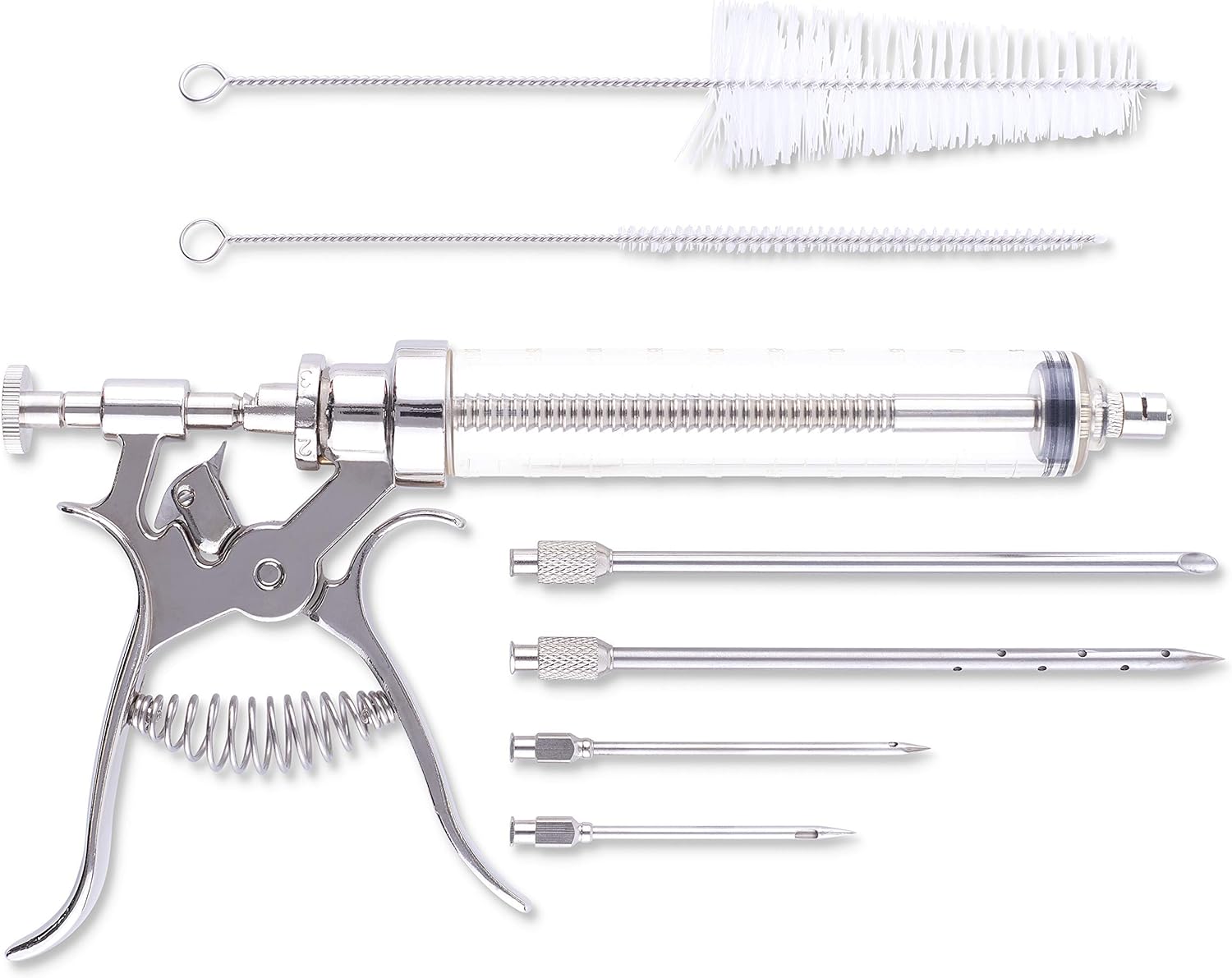 - ✔︎ FLAVOR ENRICHMENT - Includes 4 stainless Steel Commercial Grade twist lock Needle Syringes. (1) 6 inch needle with 12 small holes for liquids (1) 6 inch needle with a large hole for injecting marinades with herbs, spices, garlic, ginger, etc. (1) 4 inch needle with 2 small holes for precision applications (1) 3 inch needle with 2 larger holes.