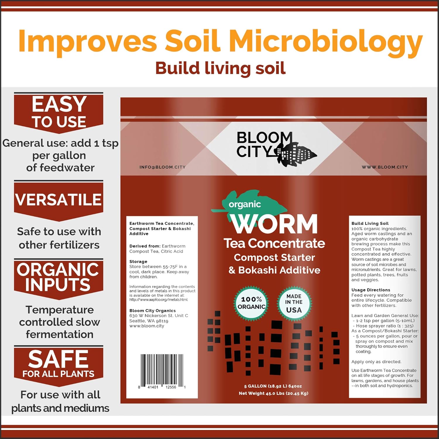 Organic Earthworm Tea Concentrate and Compost and Bokashi Booster by Bloom City, Quart (32 oz)