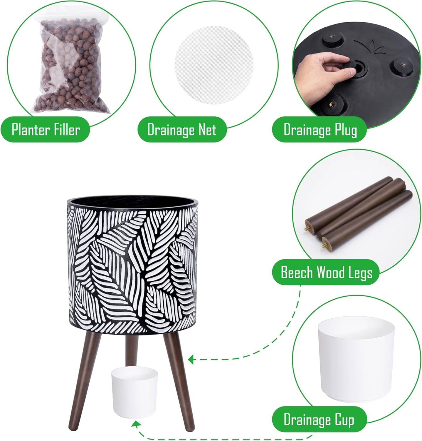 - Whatβs included: planter pot with drainage hole, drainage plug, set of stand β 3 solid wooden legs.