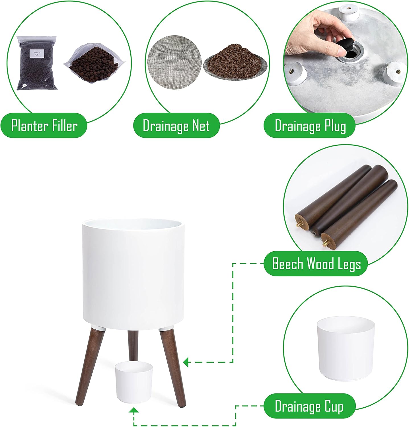 - Whatβs included: planter pot with drainage hole, set of stand β 3 solid wooden legs.