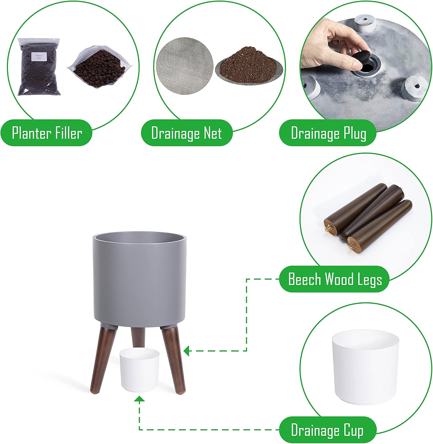 - Whatβs included: planter pot with drainage hole, set of stand β 3 solid wooden legs.