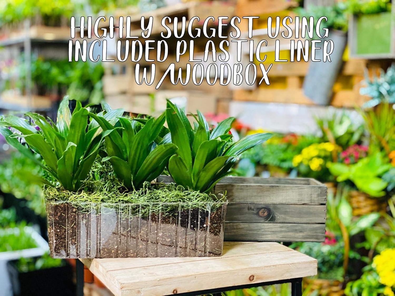 - ✔️PLASTIC LINER: With the included plastic liner, easily add dirt, moss or vase filler to this vessel. ❌WARNING: Please do NOT remove our LINER for any water usage. The wood box is not waterproof and it will damage the box.