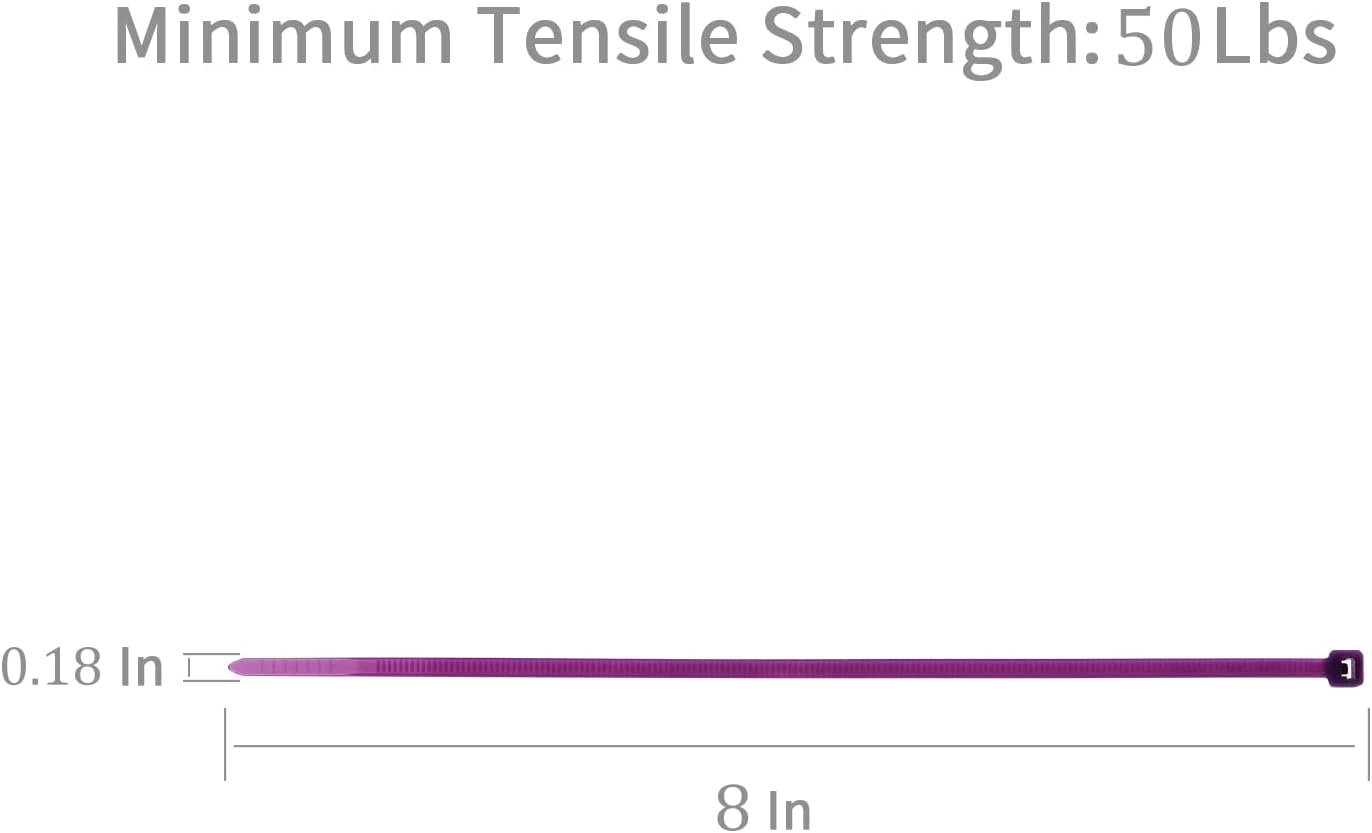 XINGO 100PCS Cable Zip Ties Heavy Duty, Premium Nylon Plastic Wire Ties with 50 Pounds Tensile Strength, Self-Locking Black Nylon Zip Ties for Indoor and Outdoor (8 inch, Purple)