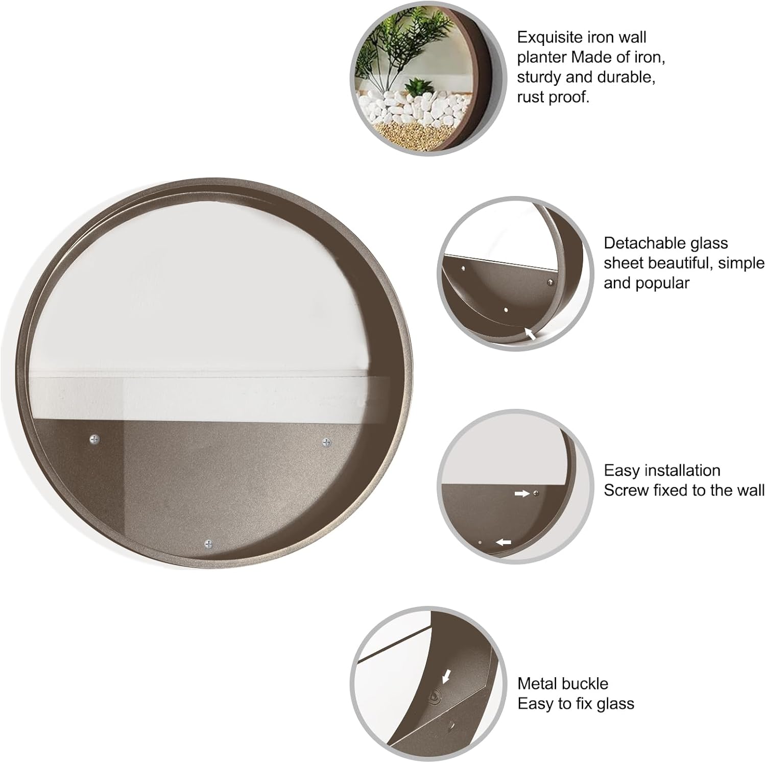 3 Pack Set Wall Planters,Modern Round Glass Wall Planter Succulent Planter Circle Iron Hanging Planter Vase for Herb,Small Cactus Perfect for Balcony, Room and Patio Decor (Coffee)