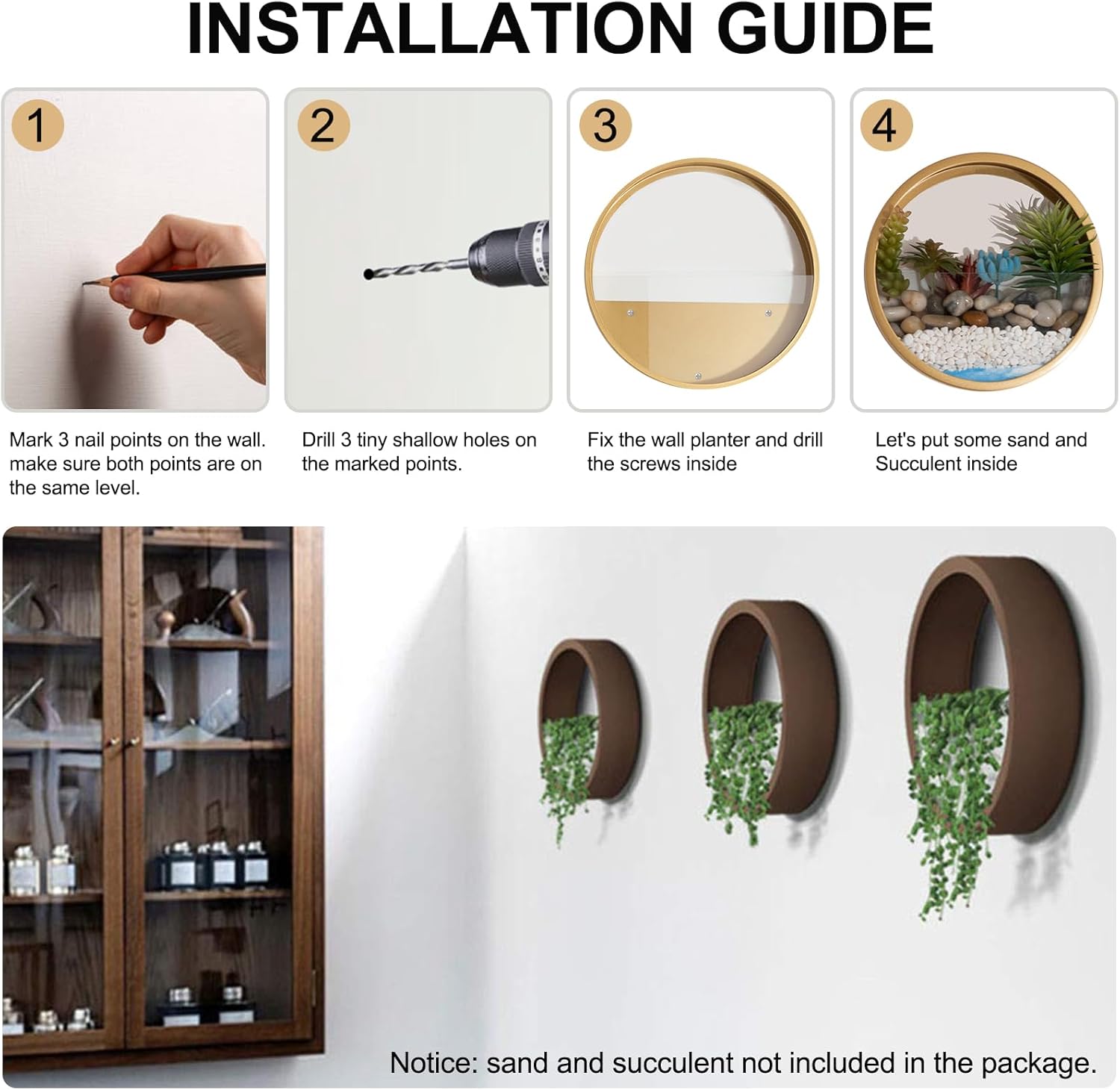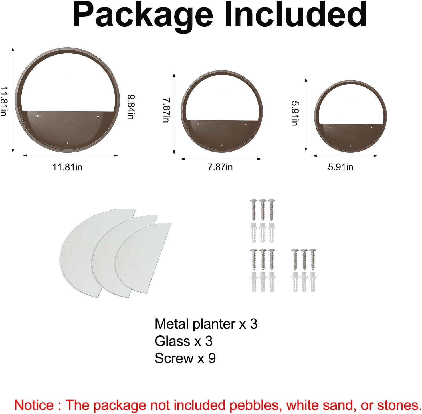 - Includes 3 sizes - small, medium and large planters for displaying plants
