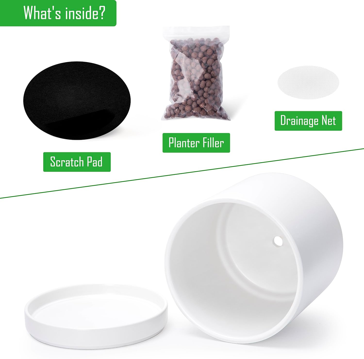 - Thoughtful Functionality: Includes a drainage hole to prevent overwatering, plus a mesh drainage net and scratch pad for added convenience.
