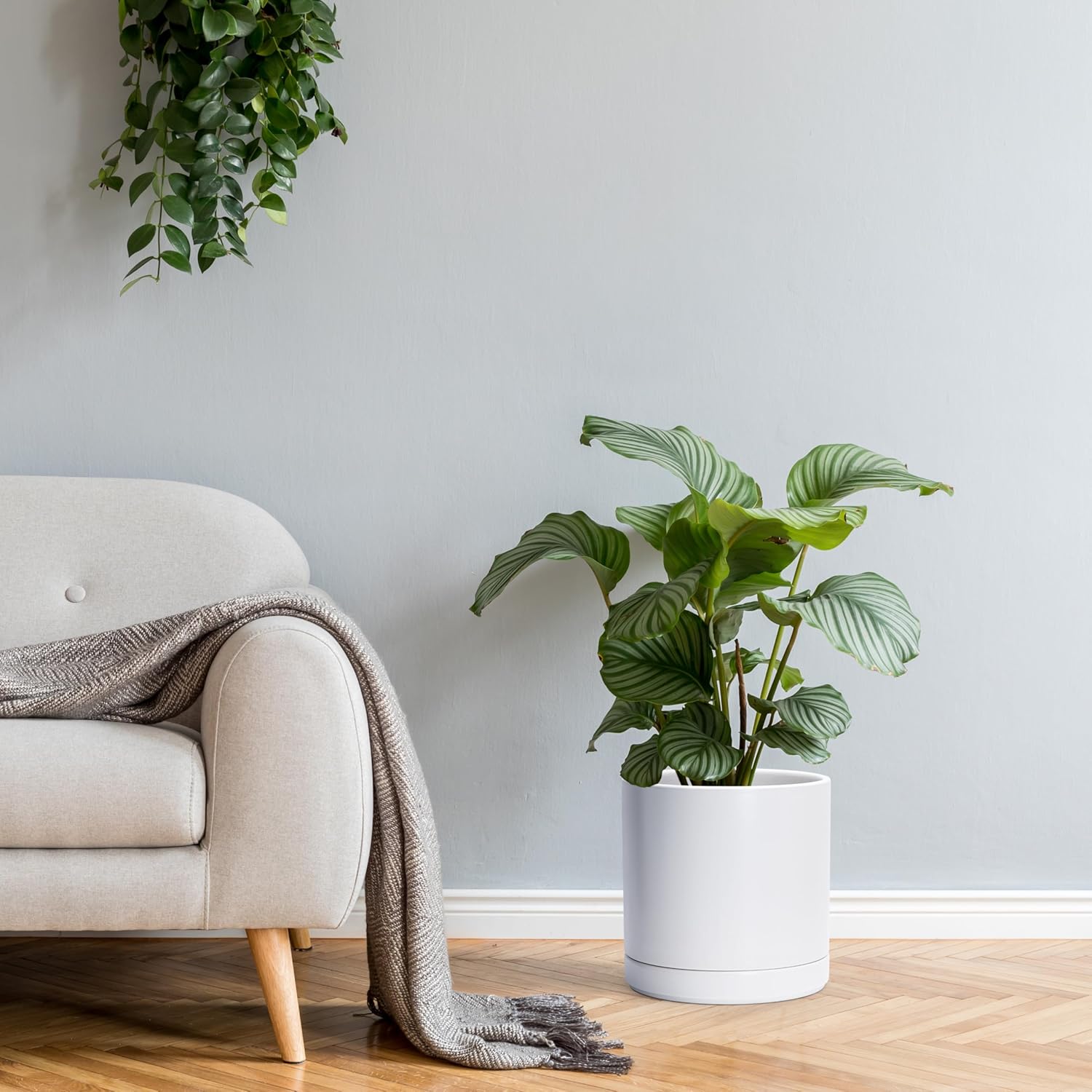 - Matching Ceramic Saucer: Includes a deep ceramic saucer perfectly fitted to the pot, effectively catching excess water and protecting your surfaces from stains.