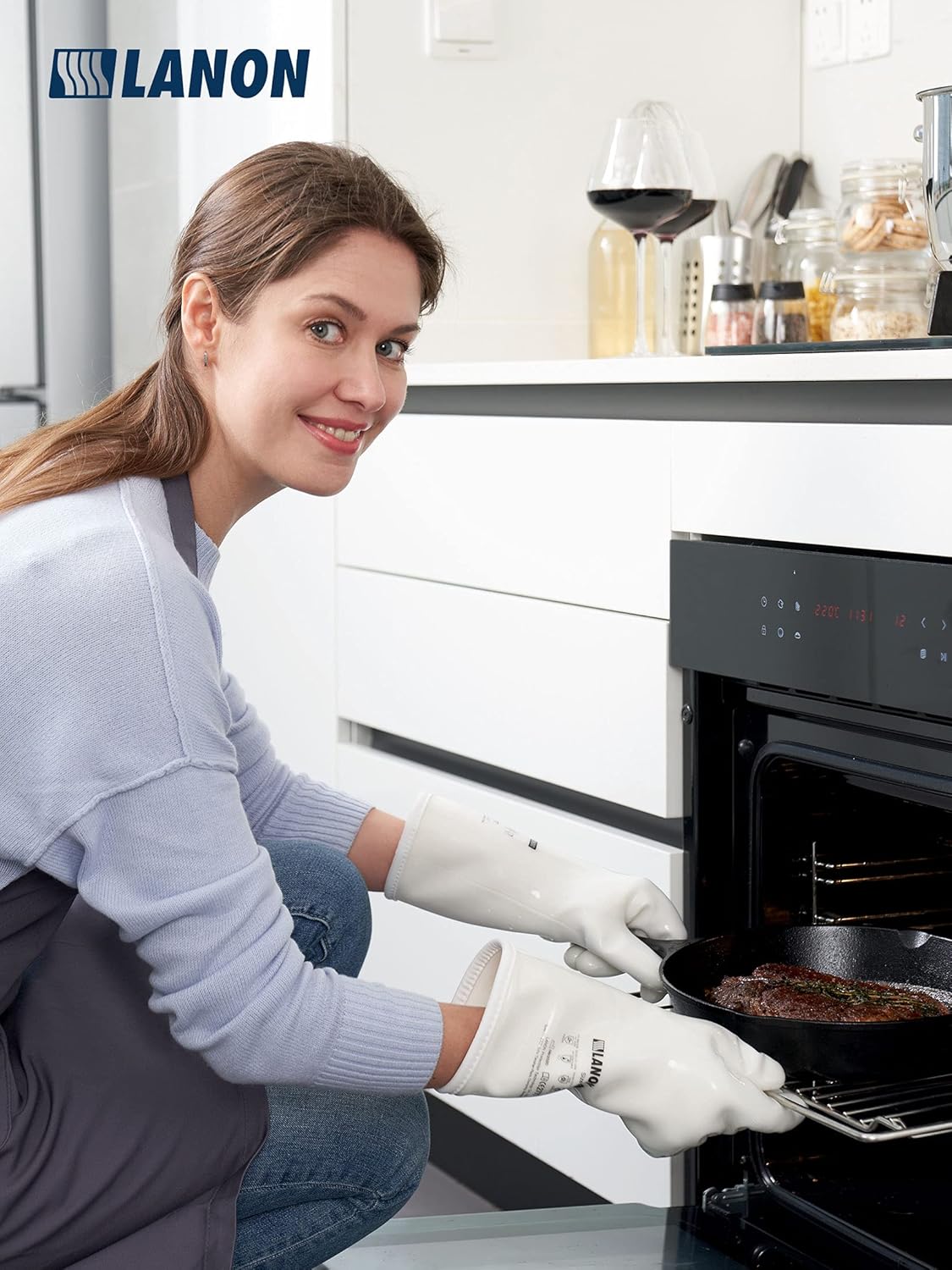 - Food grade liquid silicone - LANON is the first company to produce liquid silicone oven gloves. Our gloves are manufactured of temperature-resistant liquid silicone, an advanced material that possesses high tensile strength, stands up to daily use, and maintains its performance day after day.