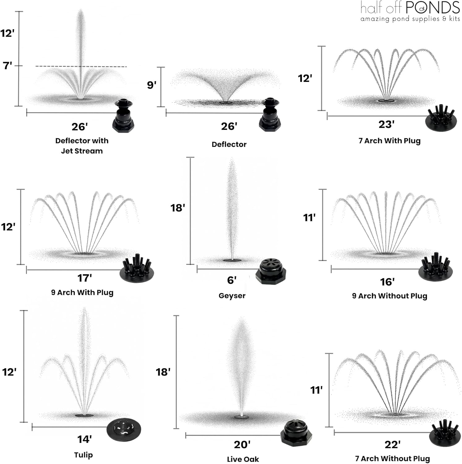 - Customizable Spray Patterns – Includes a quick-release nozzle flange and 12 interchangeable fountain spray patterns to enhance your landscape and match your pond’s style.