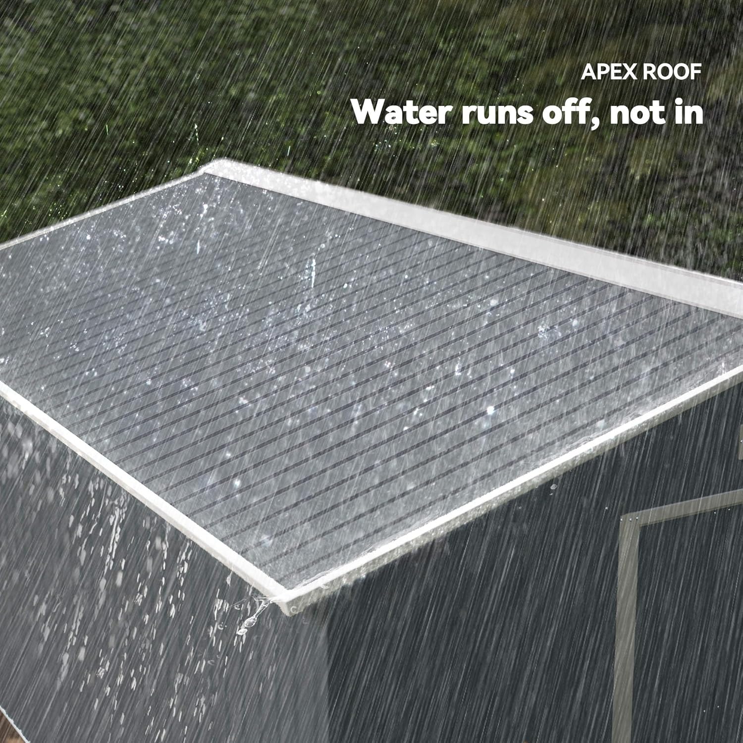 - Sloped Roof Shed: A sloped and striped roof keeps our backyard garden shed from holding on to too much weight during rainfall, preventing possible damage and keeping it intact during all seasons.