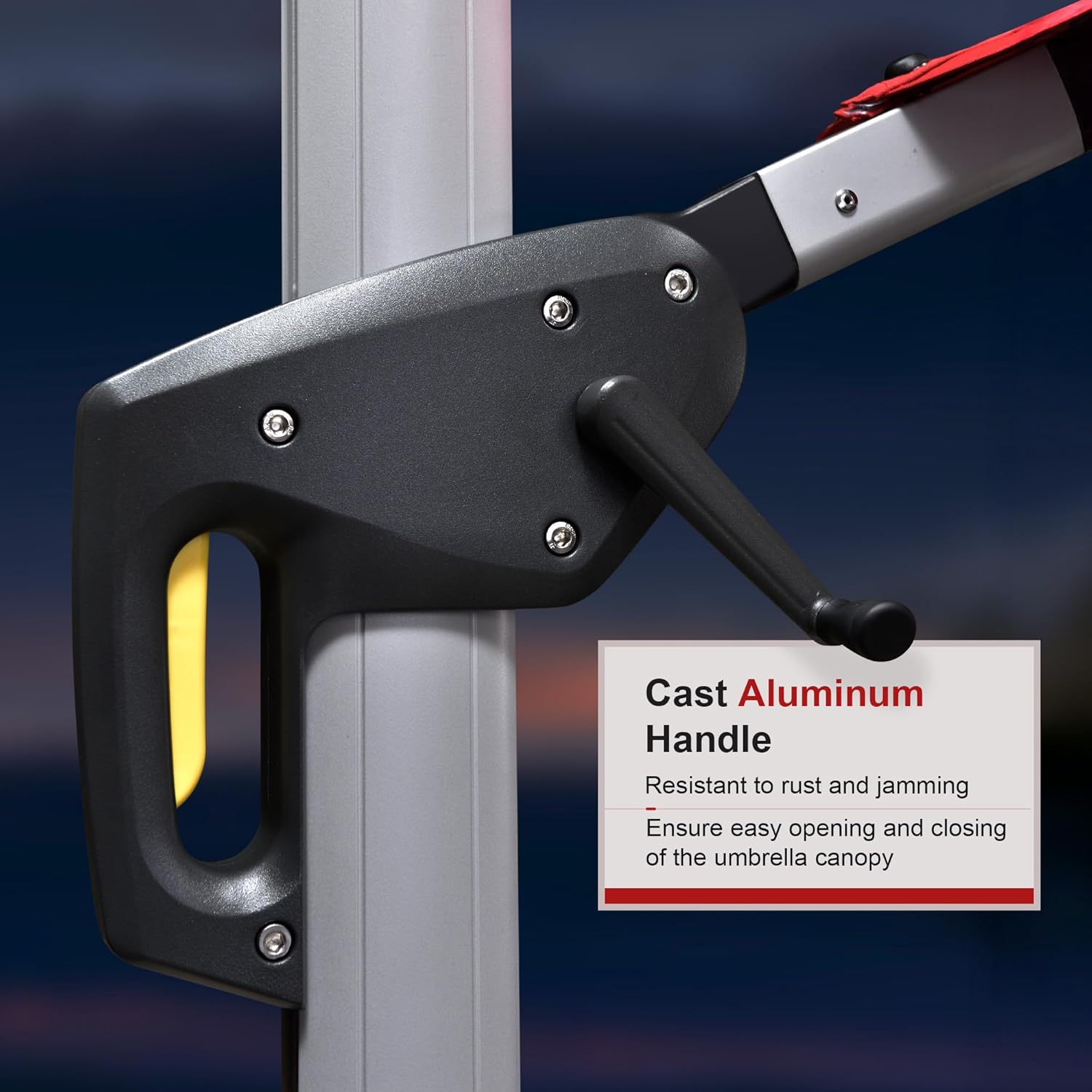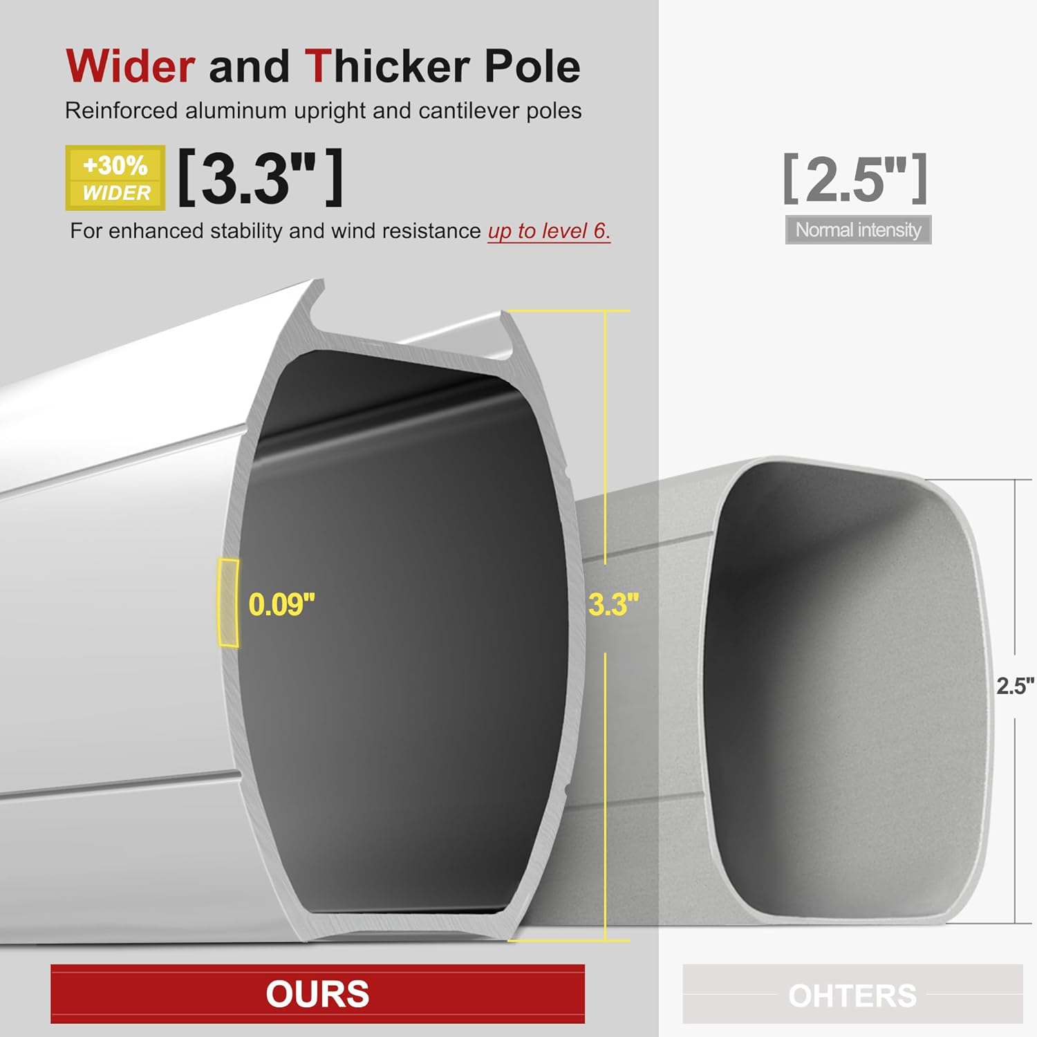 - Structural stability: 8 all-aluminum poles and a wider outdoor umbrella tray, anti-oxidation spray painted, extension of time of use