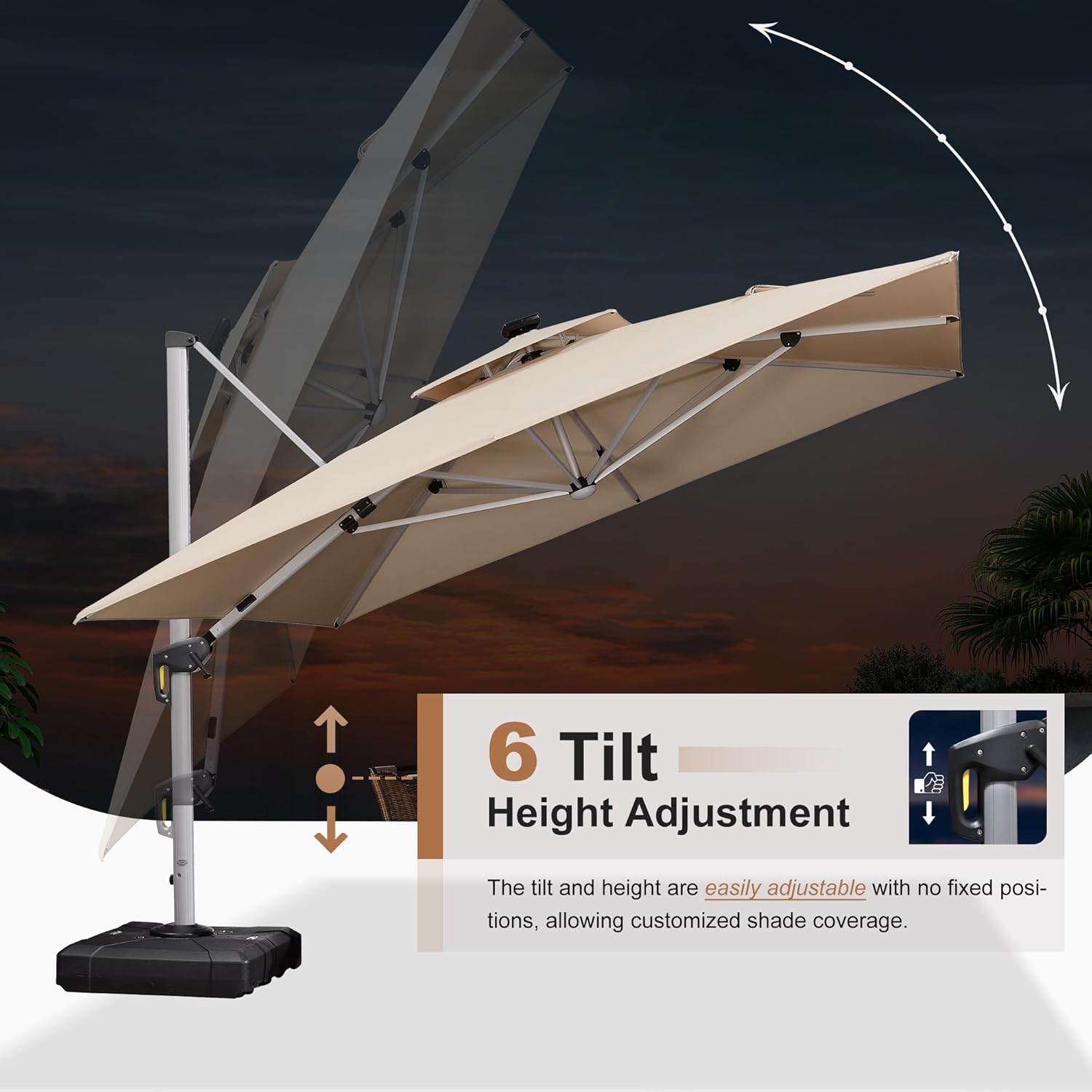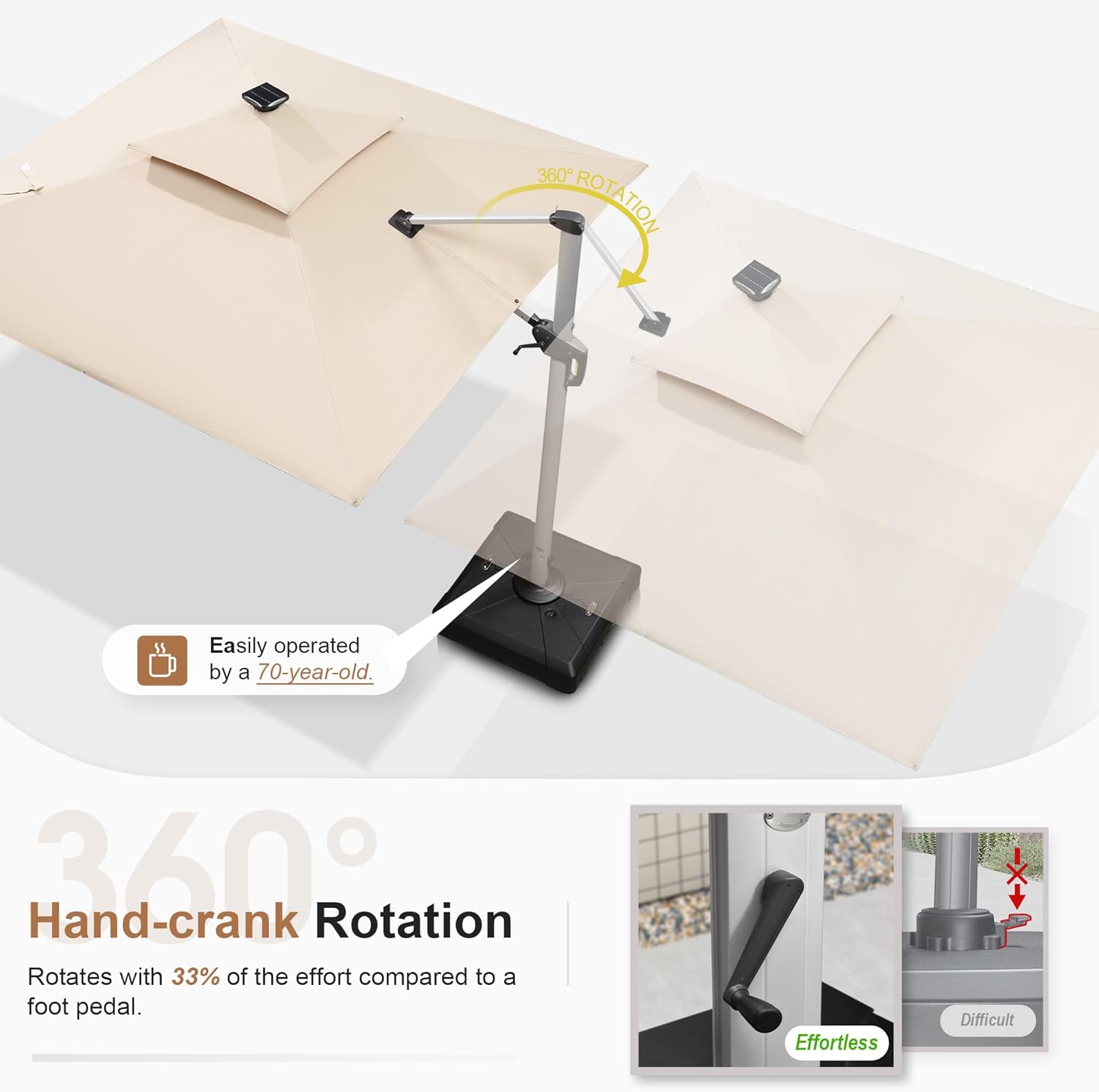 - Multi-function adjustment: Unique handle design and crank system, 6 height and angle to choose, 360 degree rotation for easier shading area control
