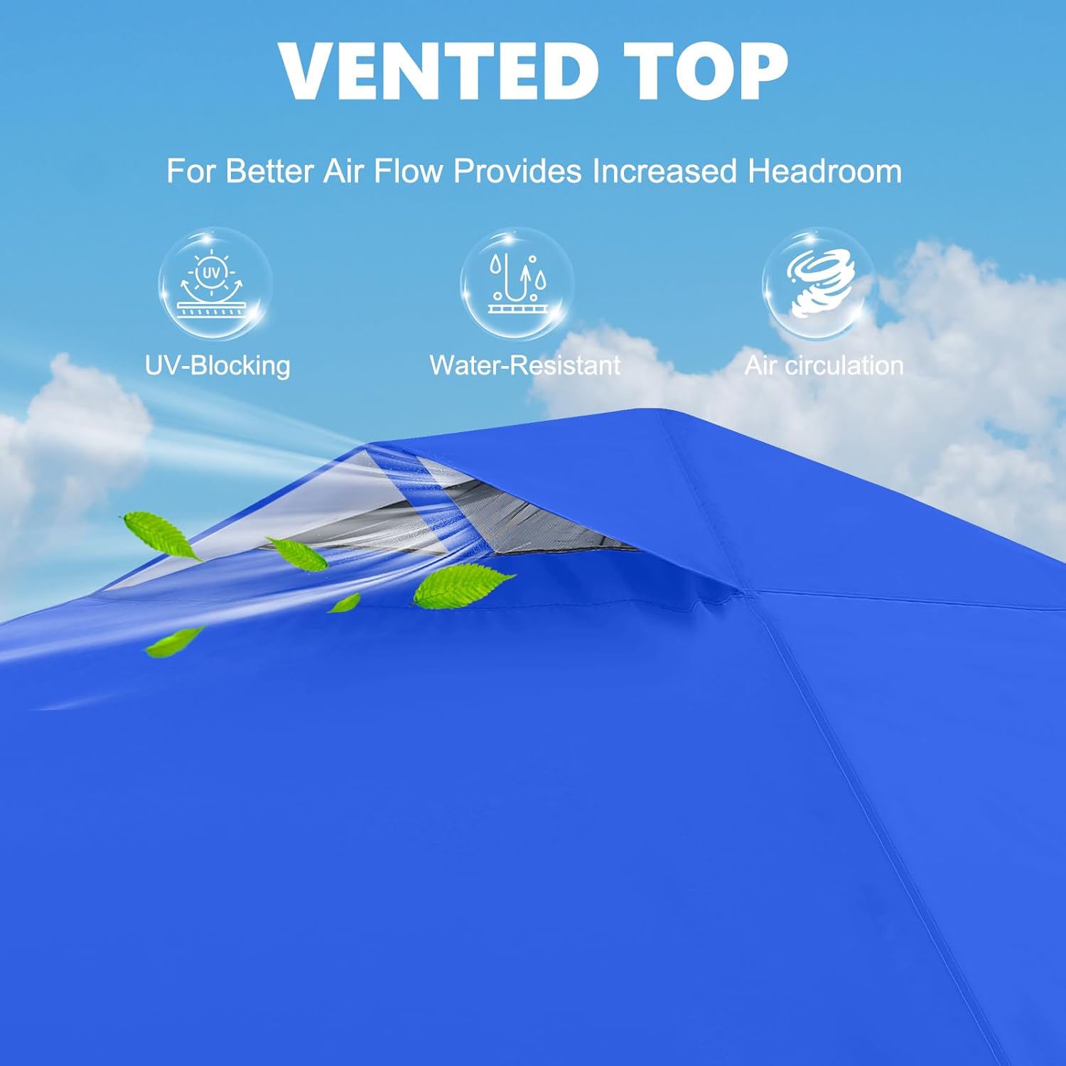 - Canopy Materials: Polyester fabric, inside coated by PU. Professionally protect you from sun, wind and rain with 100% water-resistant and 50+UV protection fabric and heat sealed seams.