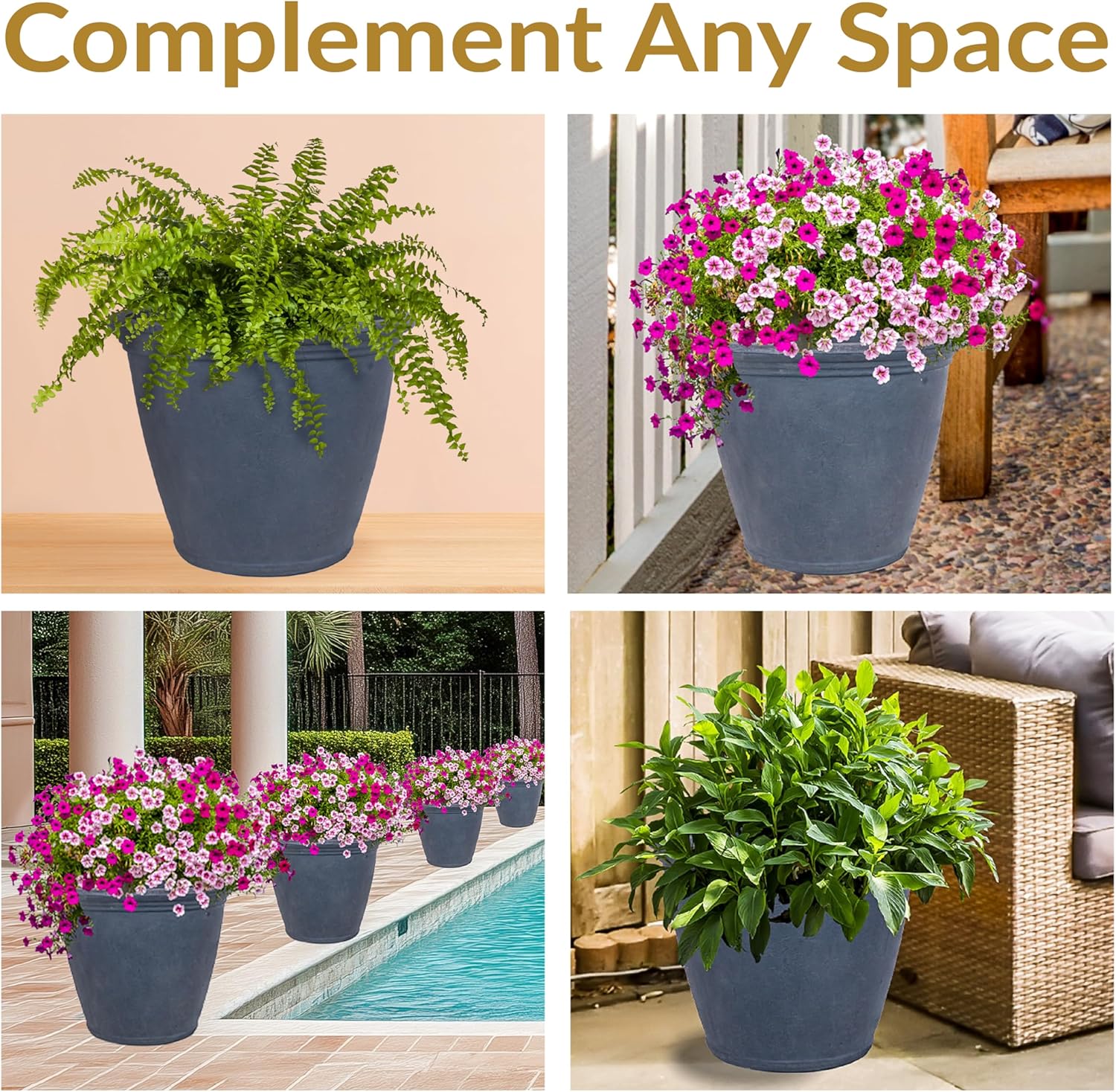 Sunnydaze 24-Inch Anjelica Large Plastic Pot for Plants - Outdoor Polyresin Round Planter with Drillable Drainage Holes - Slate