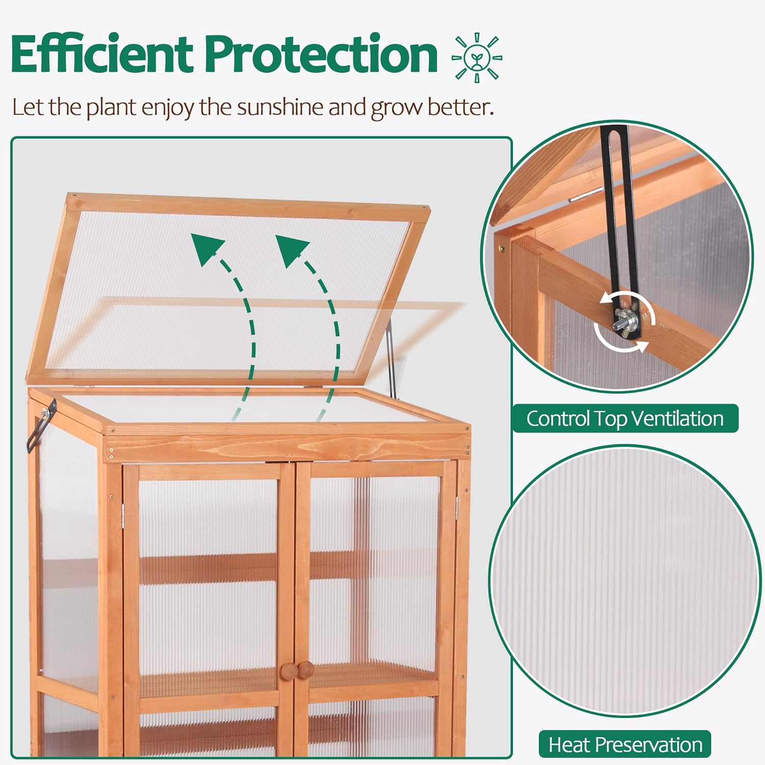 - Sturdy Structure: The cold frame greenhouse is made of fir wood which is durable and sturdy, offers long-term reliable use. And the polish and cutting workmanship on this outdoor greenhouse is smooth, allowing painting and staining on it without any other process
