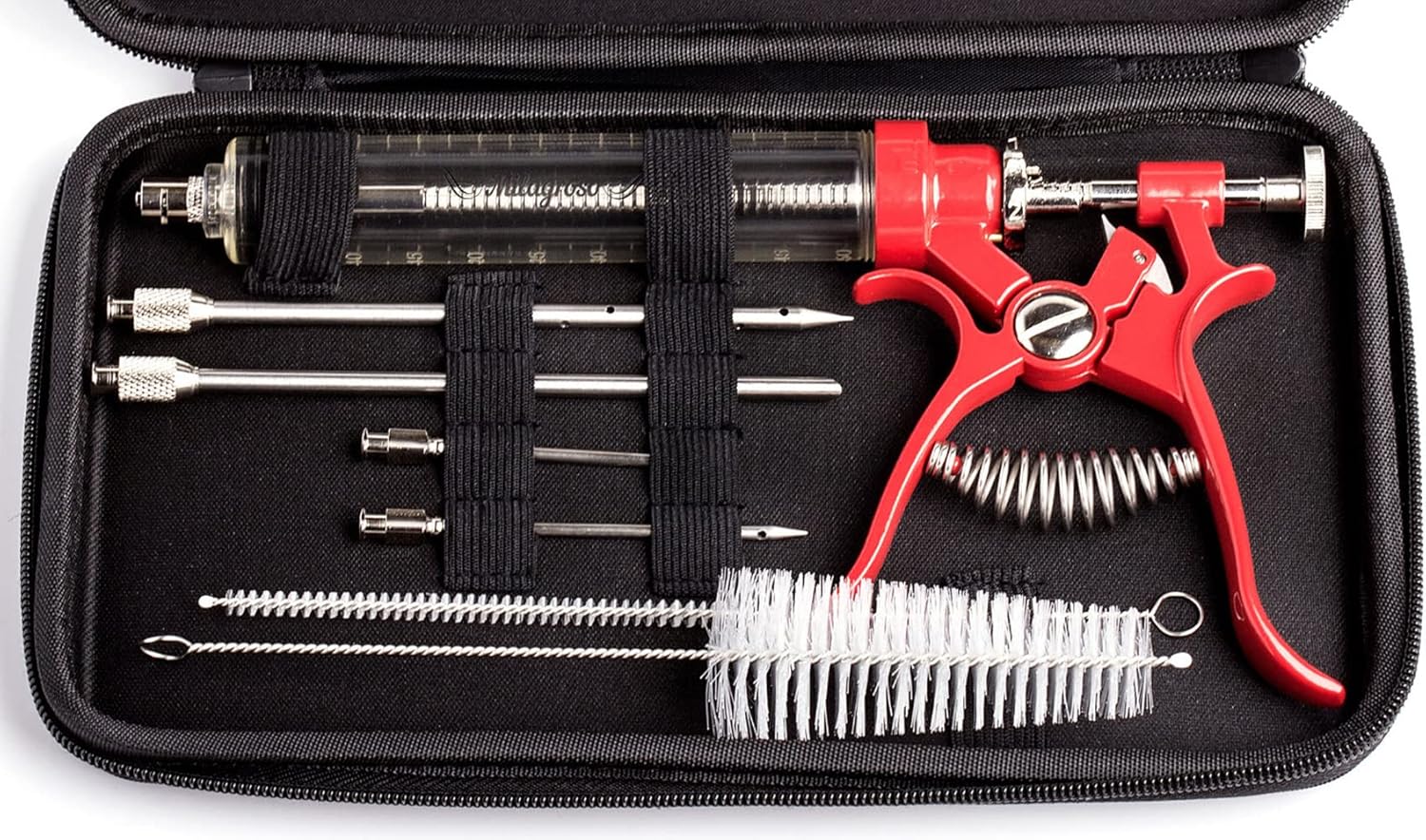- β Easy to use & dishwasher safe: Our meat pistol kit is designed for quick and easy disassemble. All the parts of our meat injectors professional are detachable for easy cleaning. With 2 cleaning brushes makes clean up Super easy. Our perfect marinade injector kit keeping the stainless steel shiny and your turkey baster syringe super tasty.