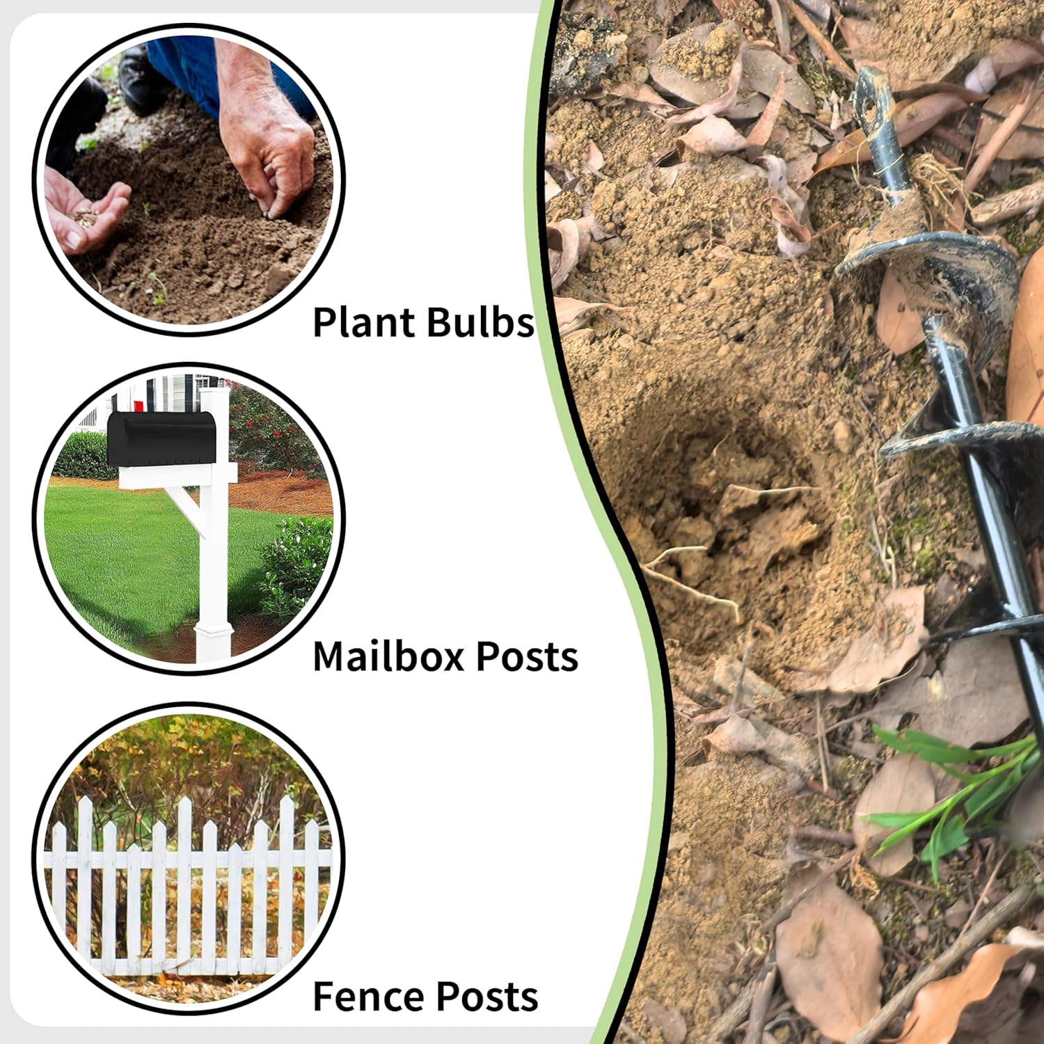 - Build to last: Made of heavy duty steel, with glossy black painted finish. The auger drill bit point on it hits the ground first and keeps it steady when you are digging hard grounds. Our patented design also makes the distance between the digging blade start and the point is the minimal, so auger drill bit will start working on hard ground without having to push down.