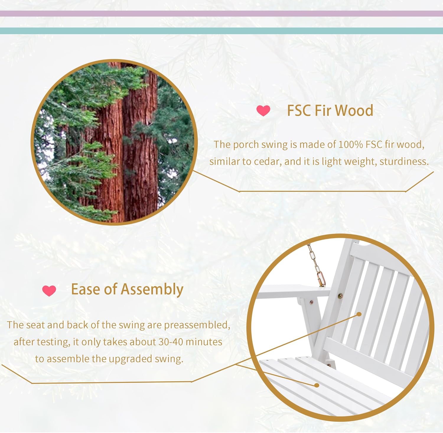- π Exemplary Craftsmanship for Lasting Enjoyment Experience the unmatched quality of our porch swing, meticulously carved from premium dried fir wood by master craftsmen. Featuring 1.5-inch thick slats without sharp edges and a protective cedar tone PU wood paint finish, this bench swing promises safety, durability, and can support up to 800 pounds. Rust-resistant coated screws guarantee longevity and peace of mind.