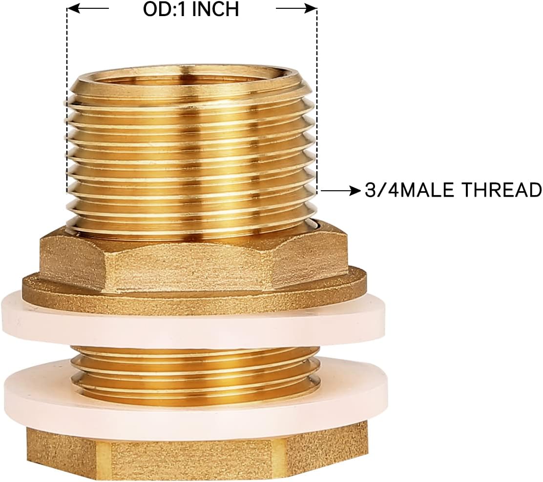 - 💧Heavy Duty 3.2 oz Solid Brass Bulkhead Fitting, 1/2" Female to 3/4" Male water tank connector bulkhead tank fitting. Heavy duty 3/4"water outlet no kink quarter turn solid brass ball valve can conntect with garden hose.