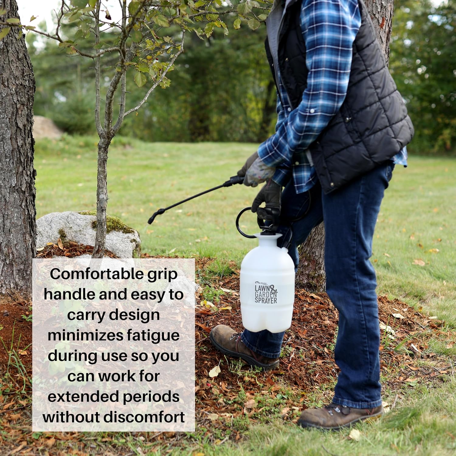 - Ergonomic Design: Featuring a comfortable grip handle and an easy-to-carry design, this sprayer minimizes fatigue during use, ensuring you can work in your garden for extended periods without discomfort. Features Thumb Operated Control Valve with Lock, 12 inch Poly Spray Wand, and 34 inch Anti-Kink Hose.