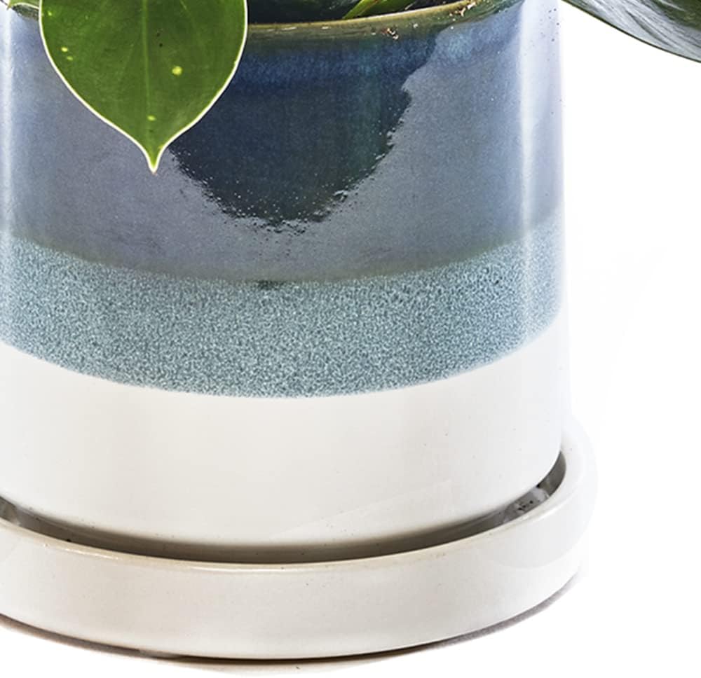 CHIVE ‘Minute’ Ceramic Succulent Planters — 5” Indoor Cactus & Flower Container Pots with Drainage & Detachable Saucer — Green Blue