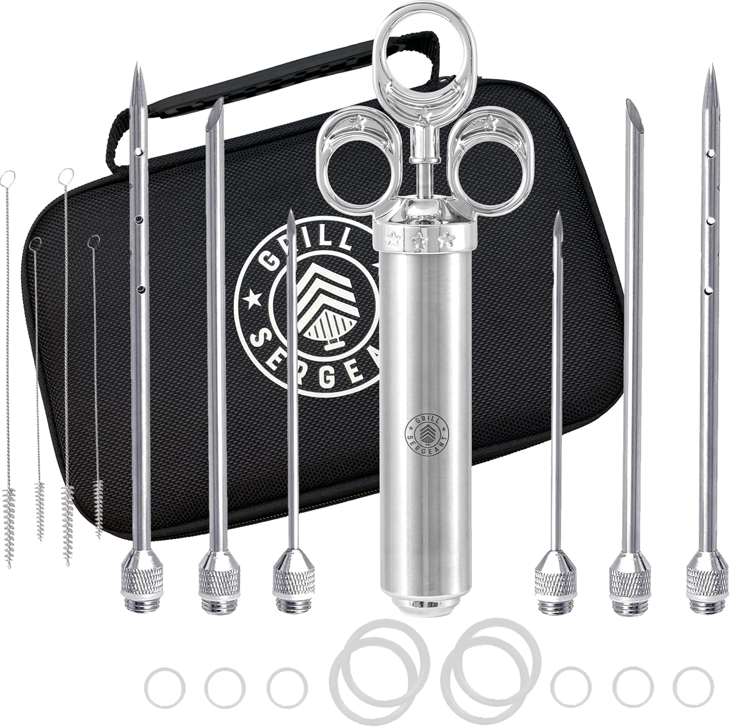 GRILL SERGEANT Professional Meat Injector, Marinade Syringe Set, Forever Guarantee, Zippered Storage & Travel Case, 304 Stainless Steel, No Aluminum, 6 Needles, 2.5 oz Capacity, 4 Cleaning Brushes