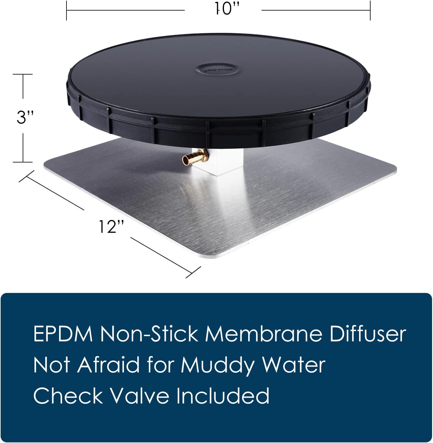 - EPDM non-stick 10โ membrane diffuser. 12โ square stainless steel base for the diffuserโs stability.