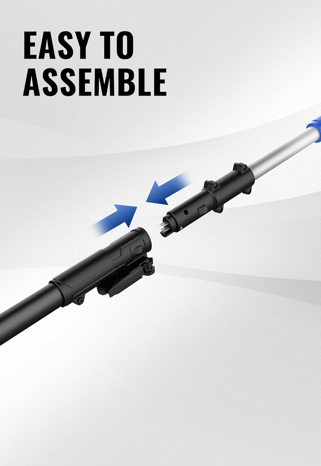 - Double safety lock:The tree trimmer pole saw has double safety lock .When you want to run the power pole saws, you need to push the buckle lock and handle at the same time to start the electric tree trimmer, which ensures your safety.