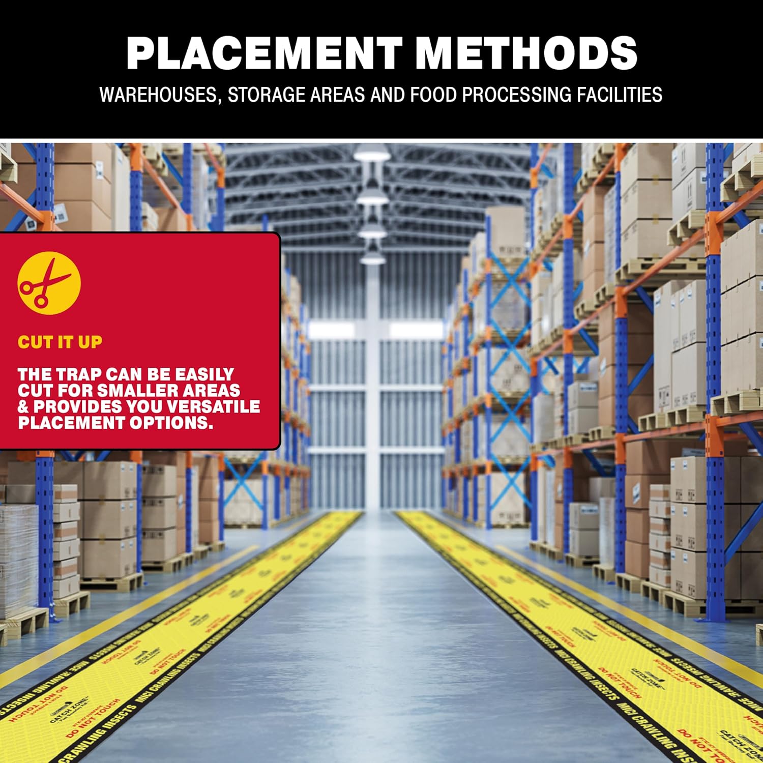 - TOTAL COVERAGE: The pest and insect trap can be used in residential, commercial, or industrial buildings, indoors and outdoors, and sensitive areas where rodenticides or snap traps are undesirable or prohibited. The insect and mouse glue trap can be used for both cleanouts and hot spots. Tape off large boundary areas to manage hot spots in your warehouse or storage facility, or isolate incoming pallets to prevent infestations.