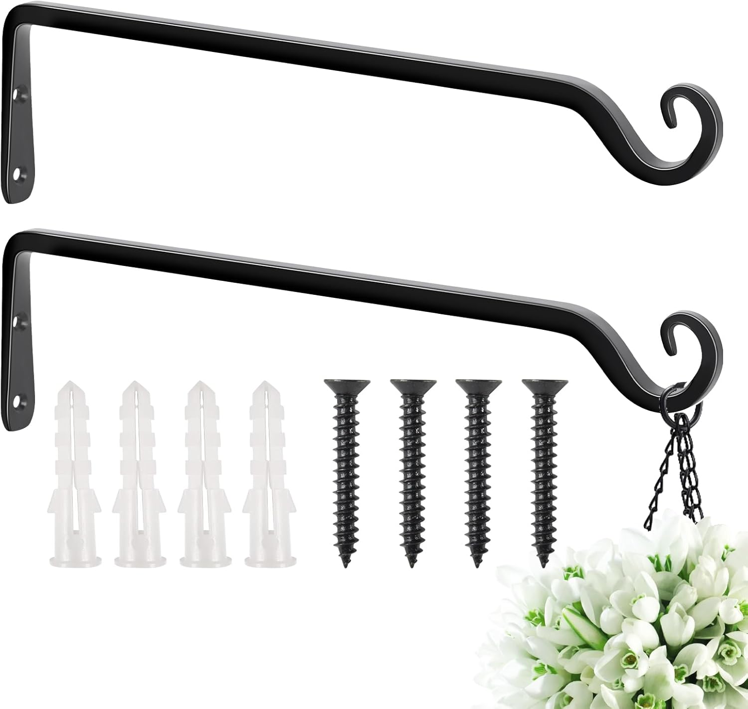 - 【EXCELLENT QUALITY】:The decorative plant hanging bracket is 4 inches in height and 12 inches from the wall, the screw length is 1.6 inches, making it suitable for hanging your favorite indoor and outdoor decorations. These hanging plant hooks are made of high-quality iron and coated with powder,they are rust and corrosion resistant. Premium quality makes them sturdy.