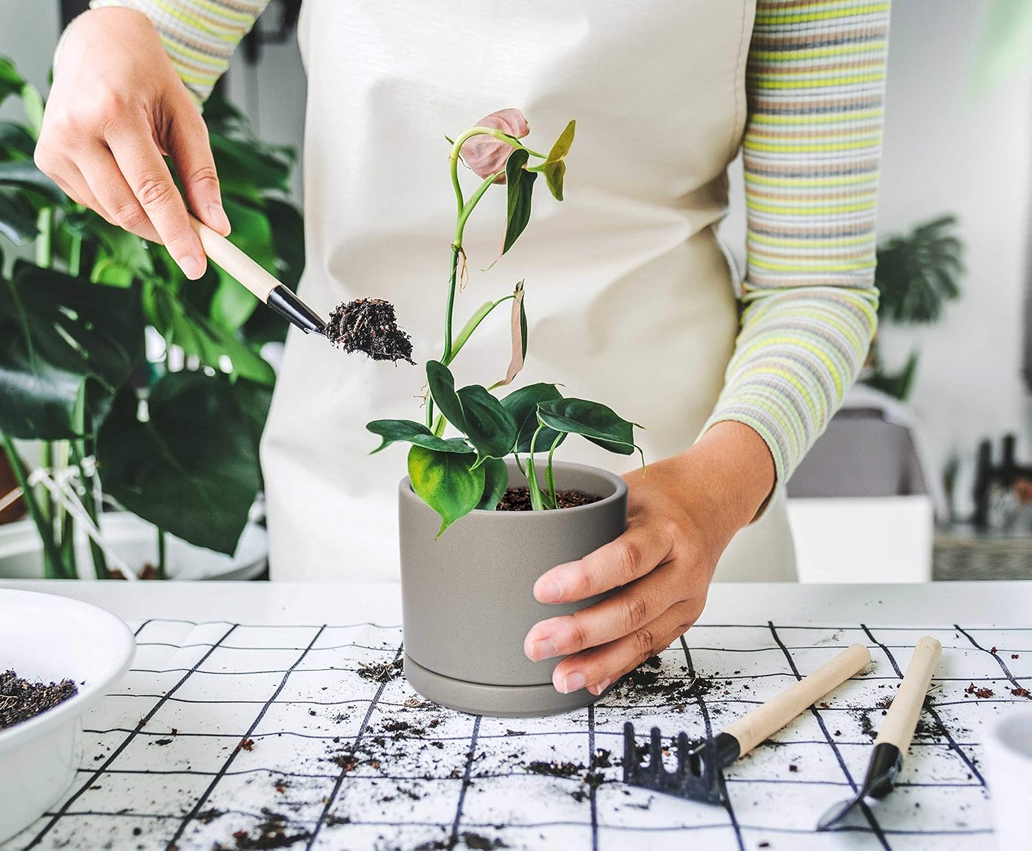 - Set of 4 Small Planter Pots - 4.6" Diameter (4.2" Inner Diameterrr) * 4.5" Height. Volume: 0.2 gallons; Potting Soil Needed 0.8 qt.