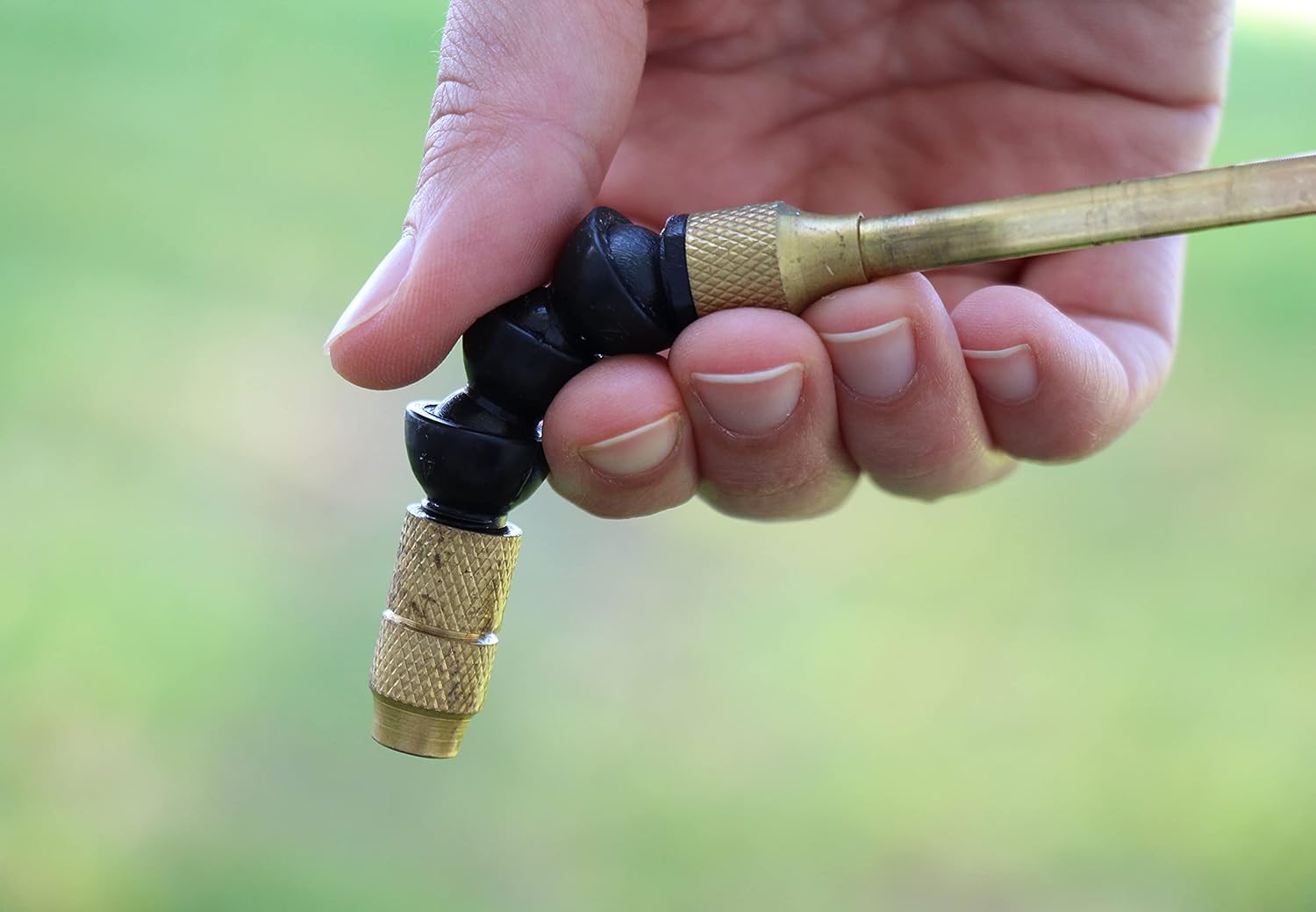 - TELESCOPIC EXTENDABLE SPRAYING WAND: Enjoy a better reach and work standing up straight with the help of the adjustable brass sprayer wand (total length including handle 23 1/2"- 34 1/2"). The comfort-grip handle has a locking trigger, so you can rest your hand while keeping a constant continuous flow. At the tip, you can adjust the water spray intensity by rotating the nozzle from water mist to water jet. The 1 1/2" rubber part at the tip allows for 360Β° flexing for extra angling options.