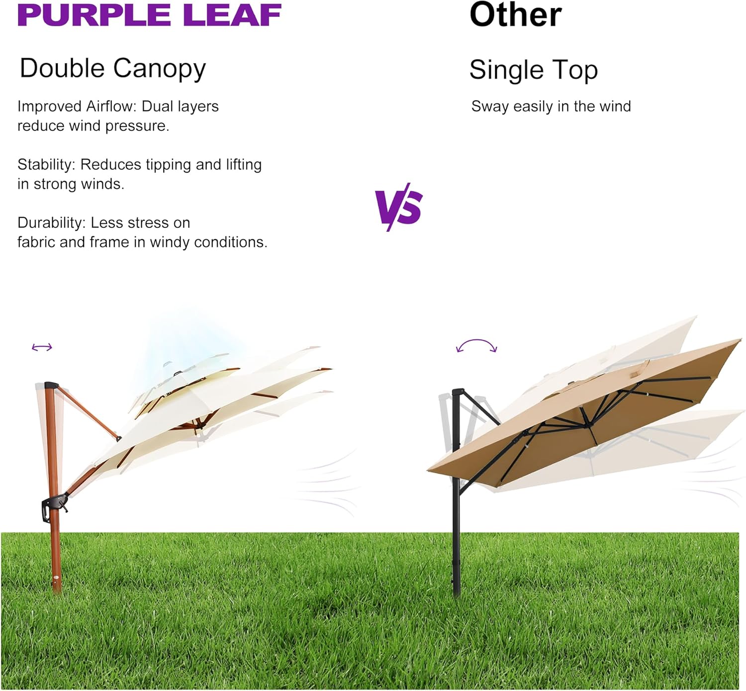 - Structural stability: 8 all-aluminum poles and a wider outdoor umbrella tray, anti-oxidation spray painted, extension of time of use